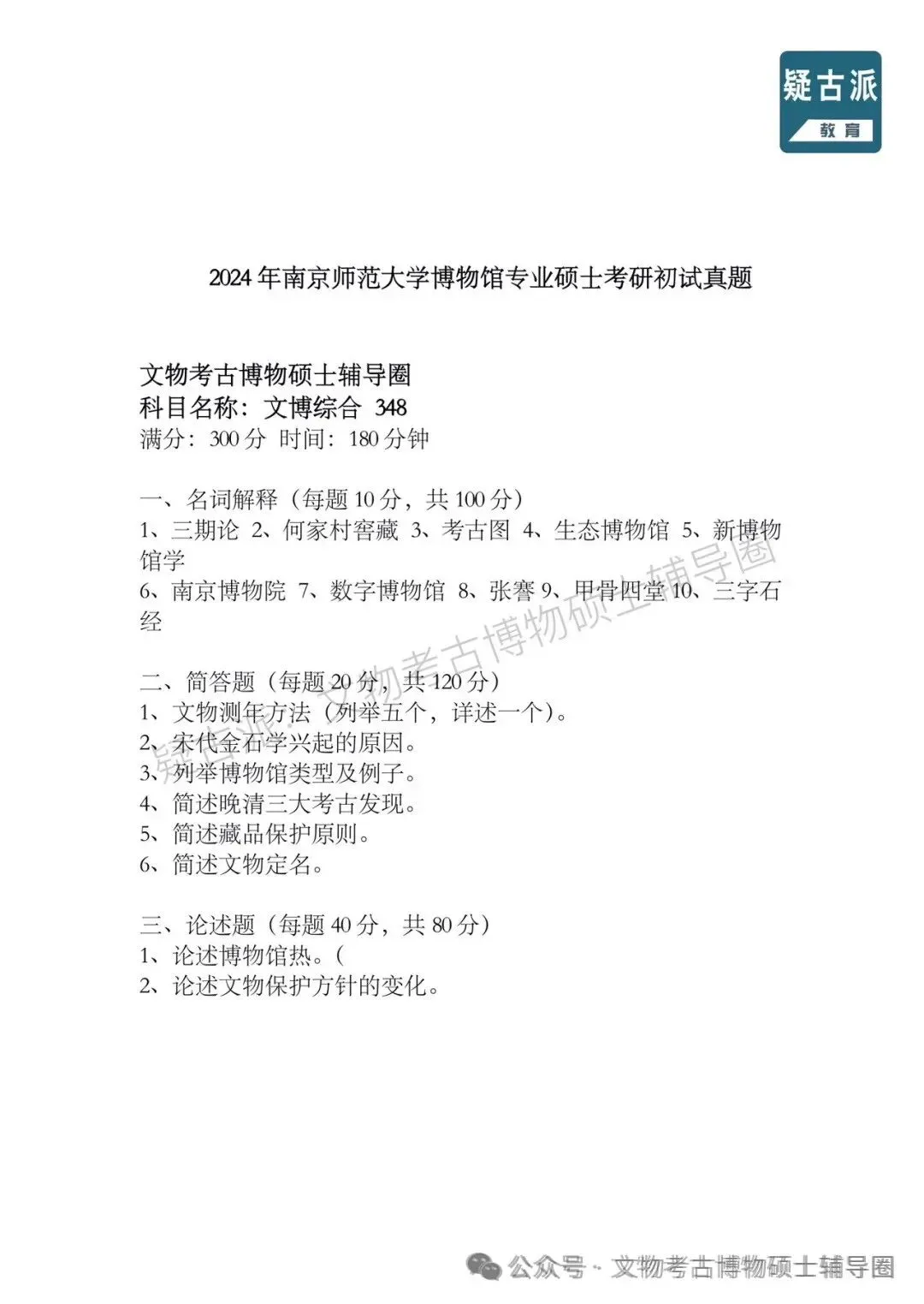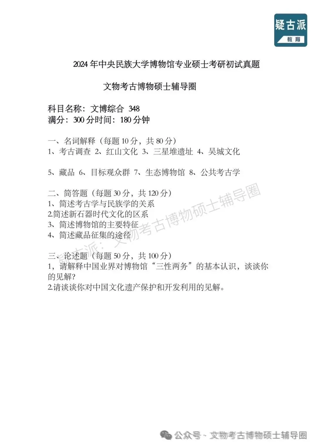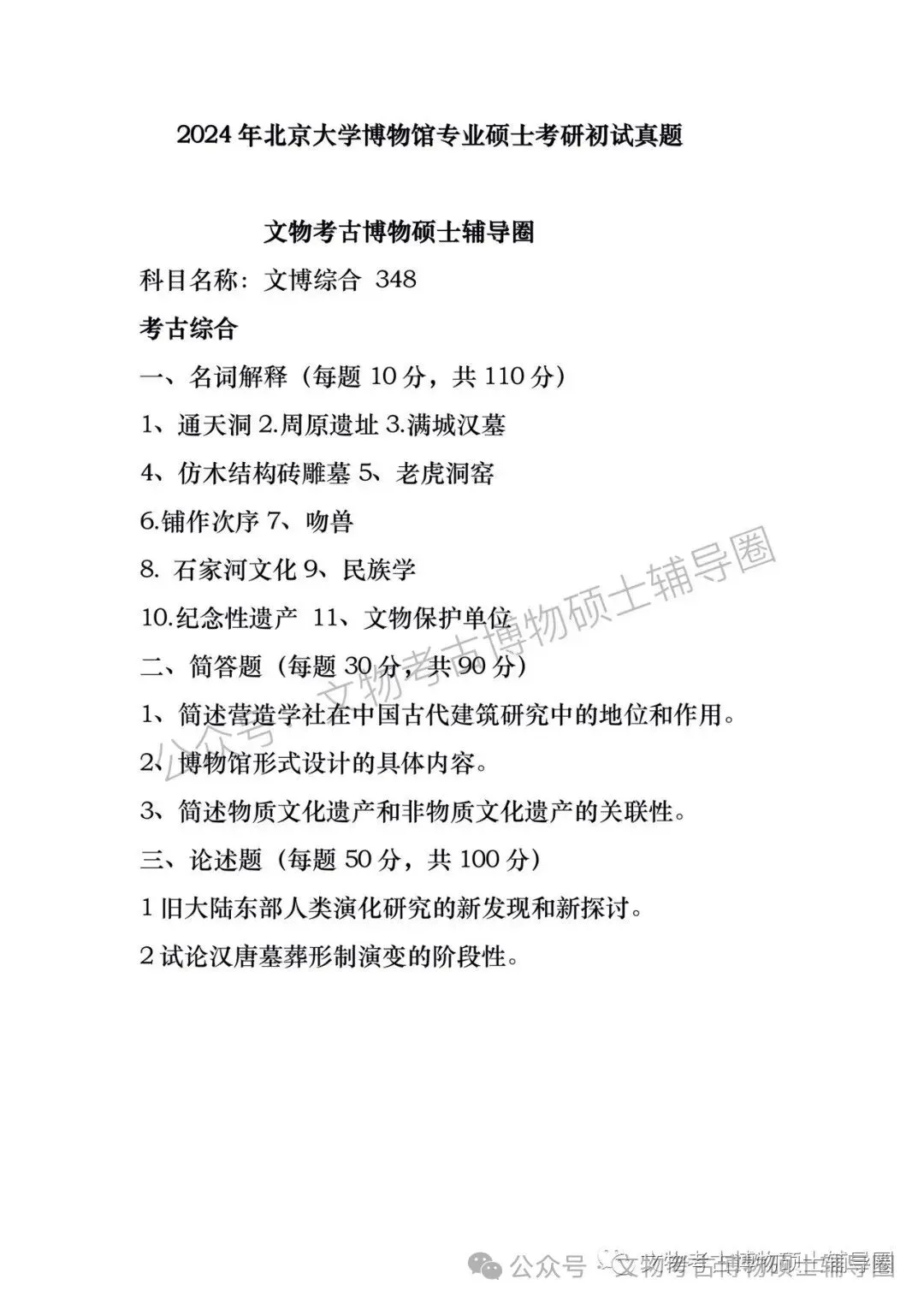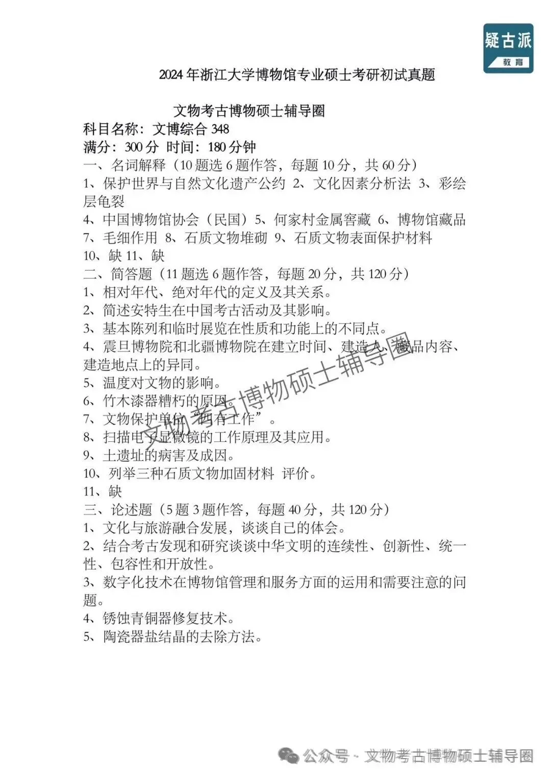 2024年全国各大高校博物馆考研初试真题汇总