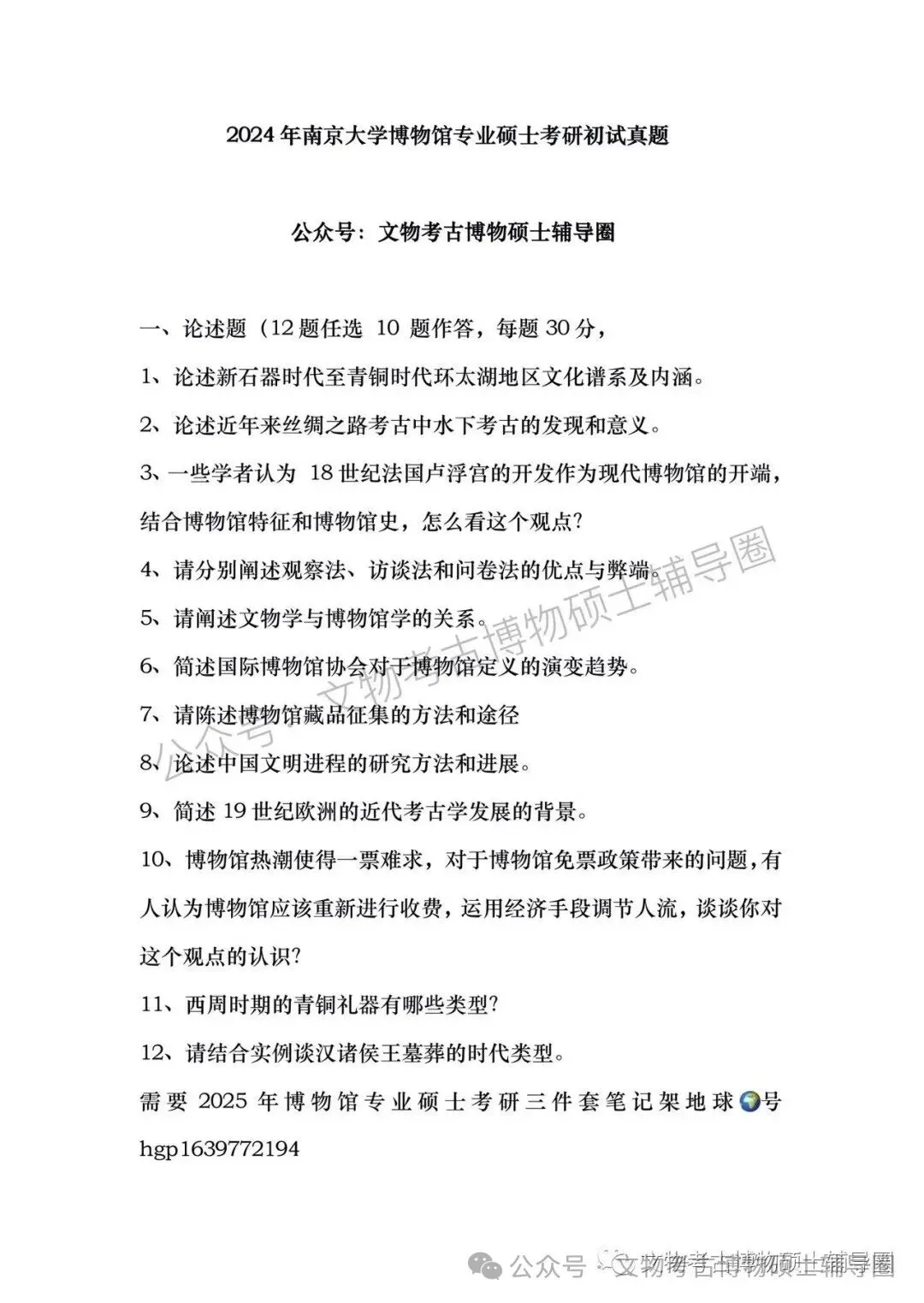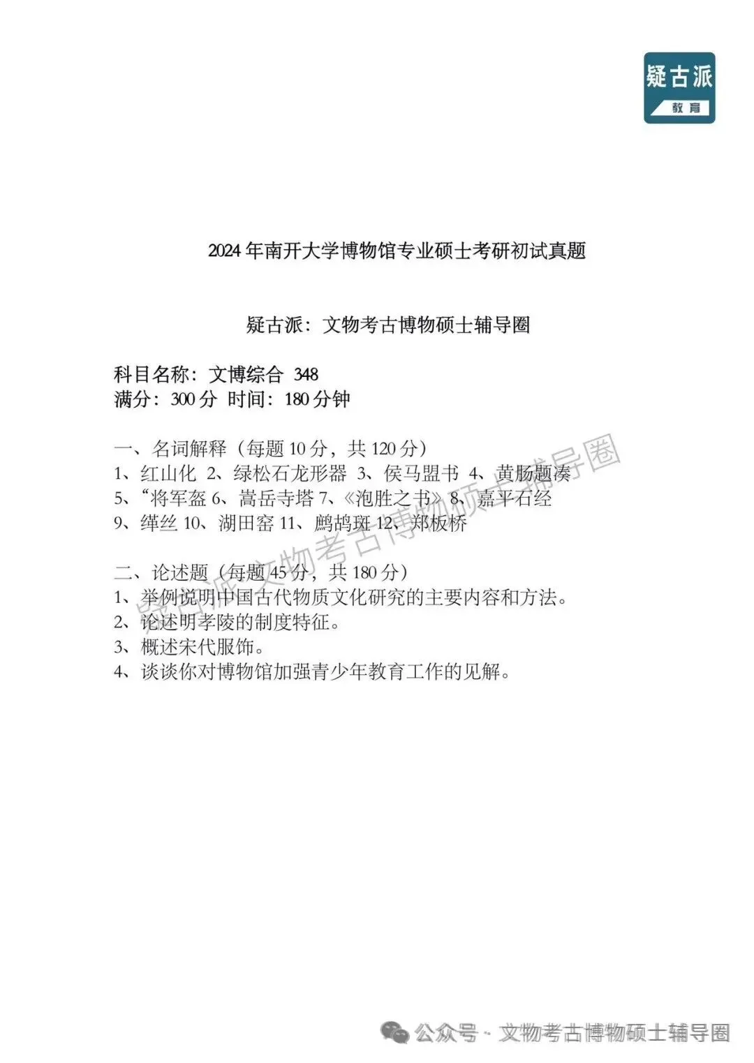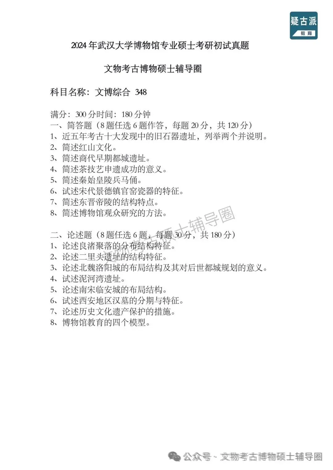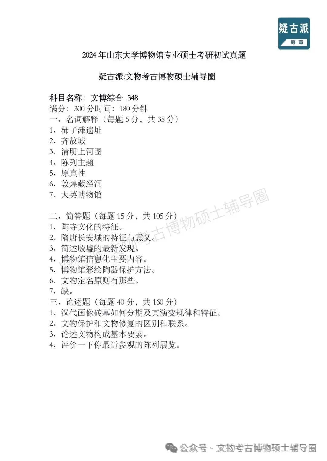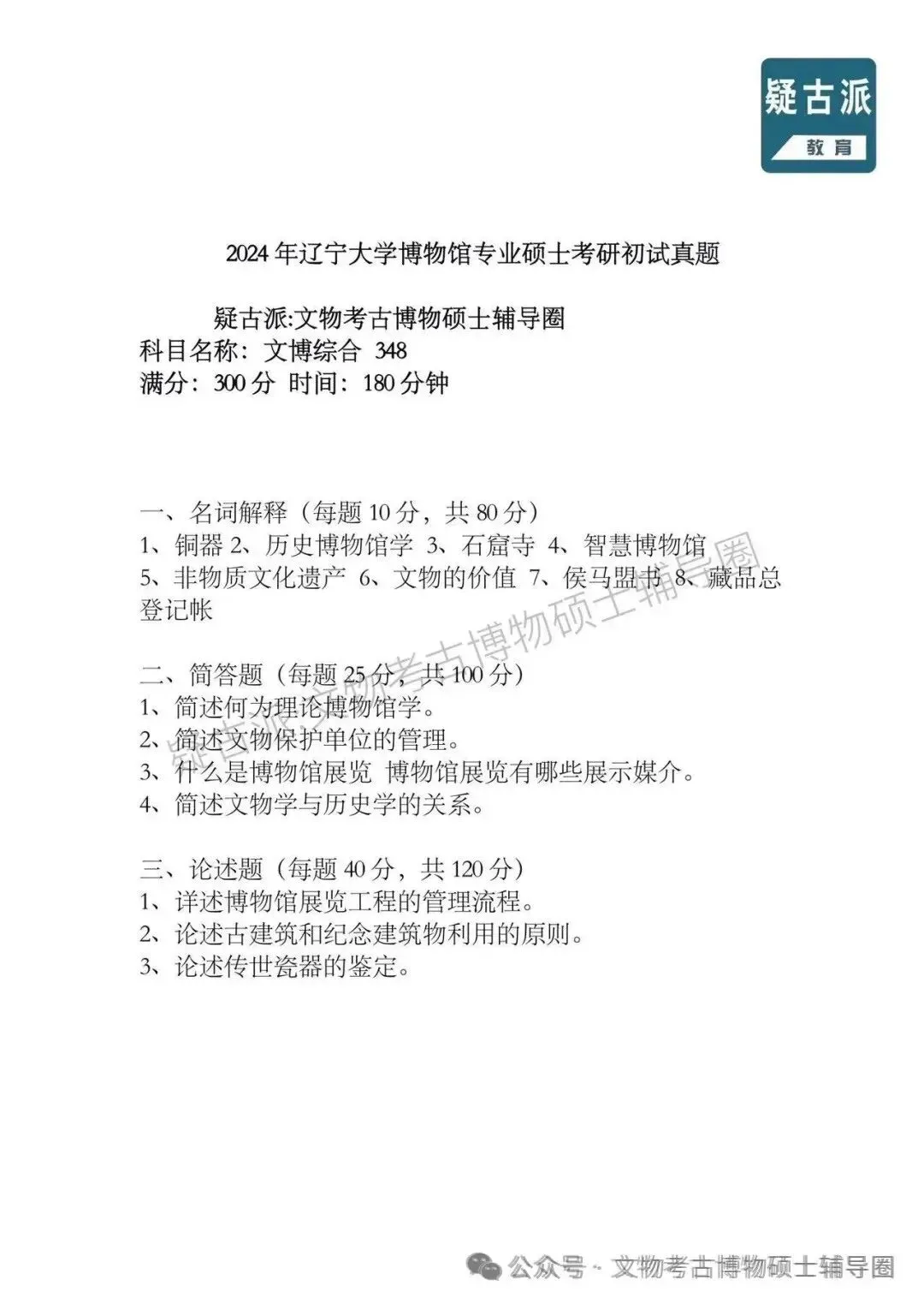 >2024年全国各大高校博物馆考研初试真题汇总
