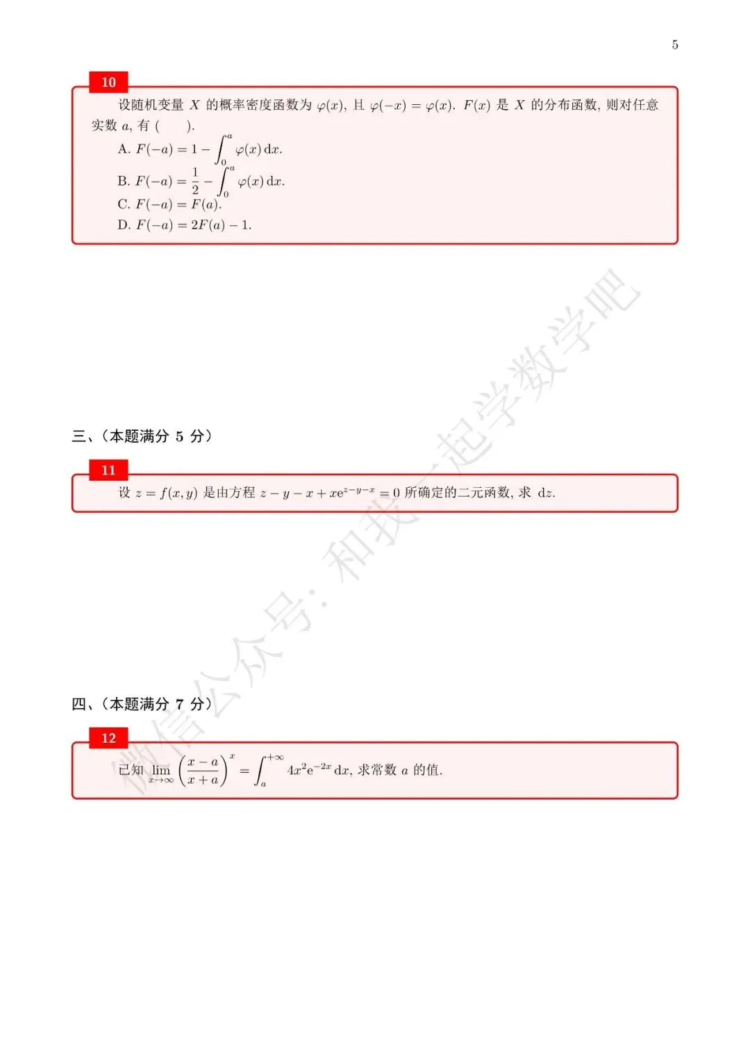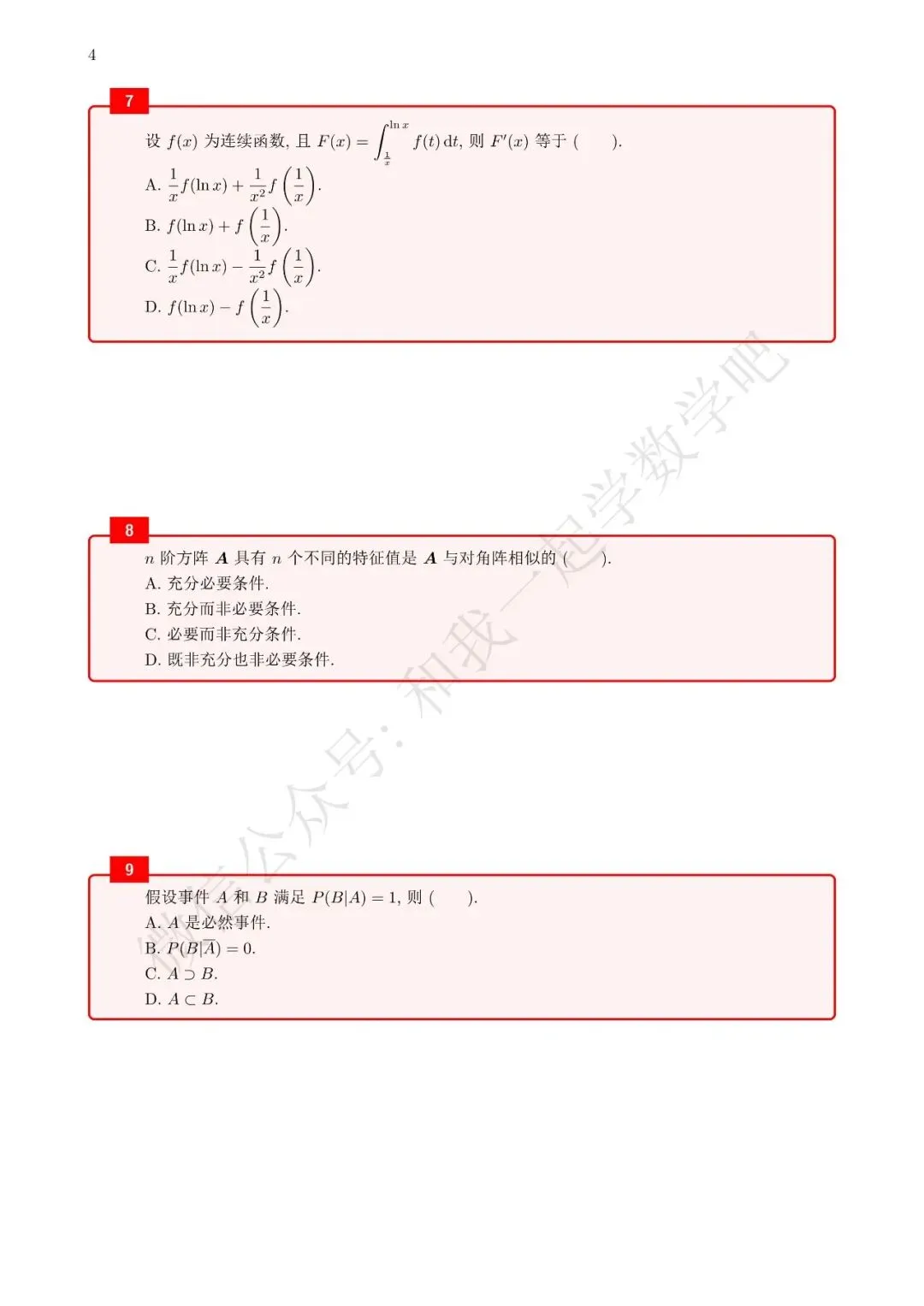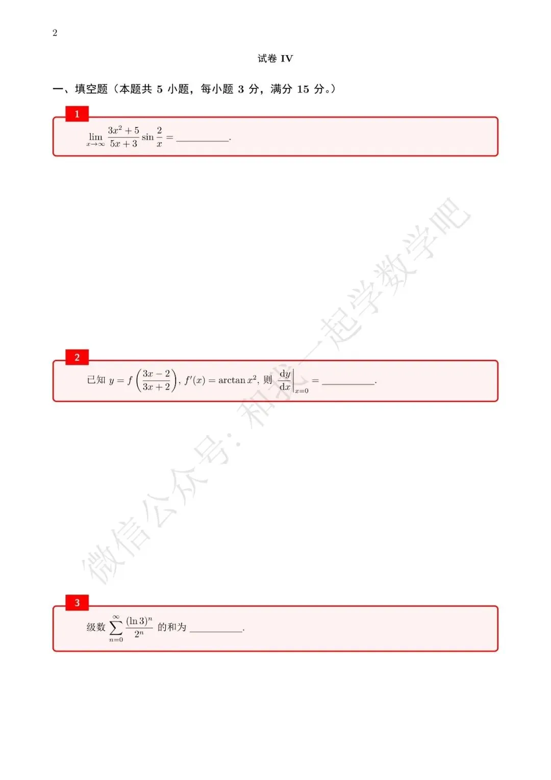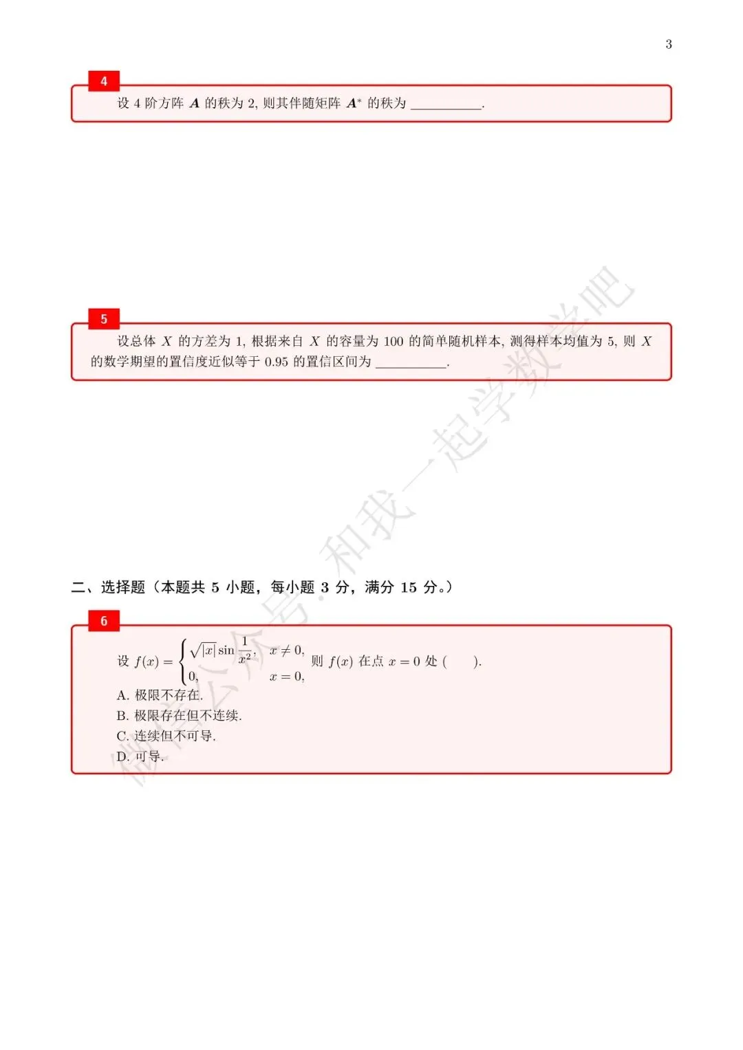 为了方便各位小伙伴们刷题,我重新排版了93年数三的真题,在每道题下面都增加了空白,方便大家写答案,记录相关知识点。