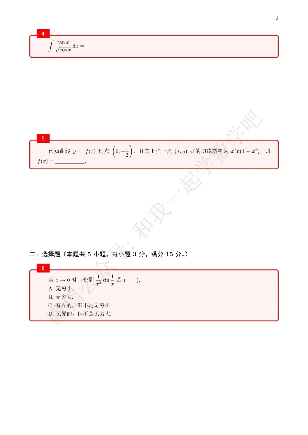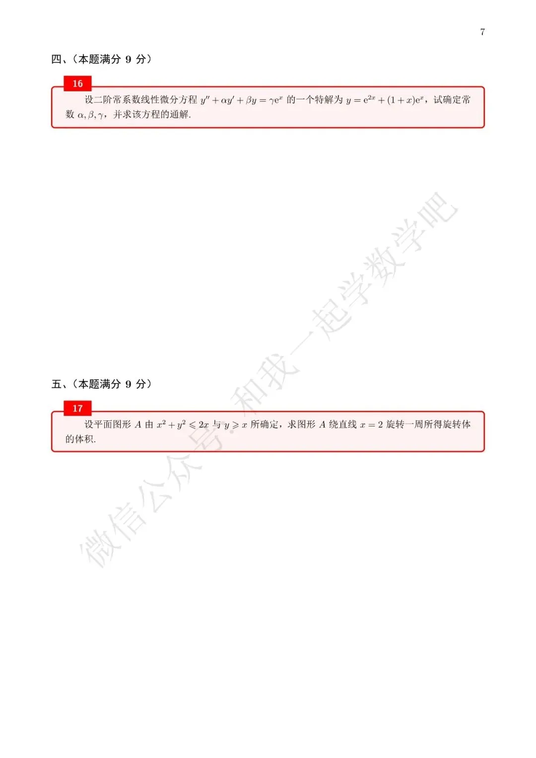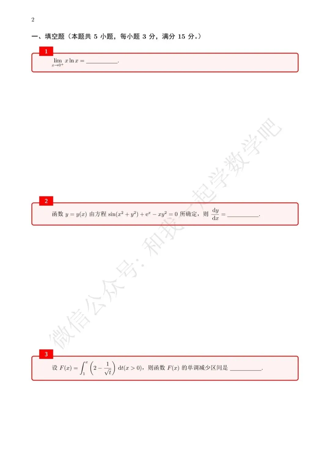 为了方便各位小伙伴们刷题,我重新排版了93年数二的真题,在每道题下面都增加了空白,方便大家写答案,记录相关知识点。