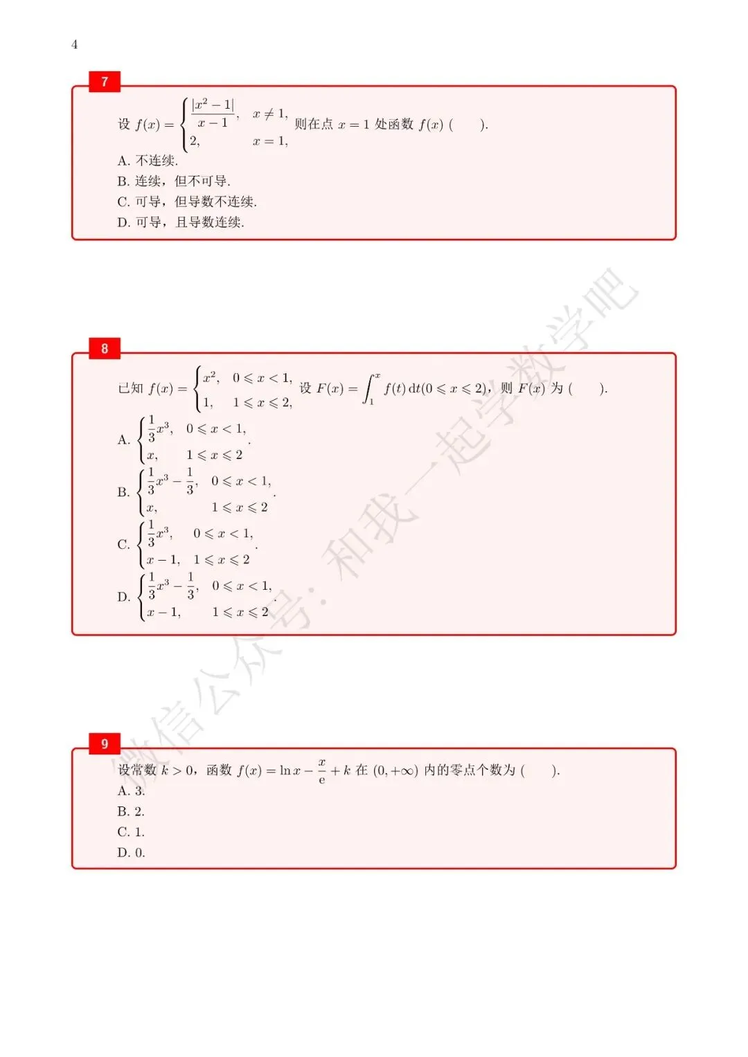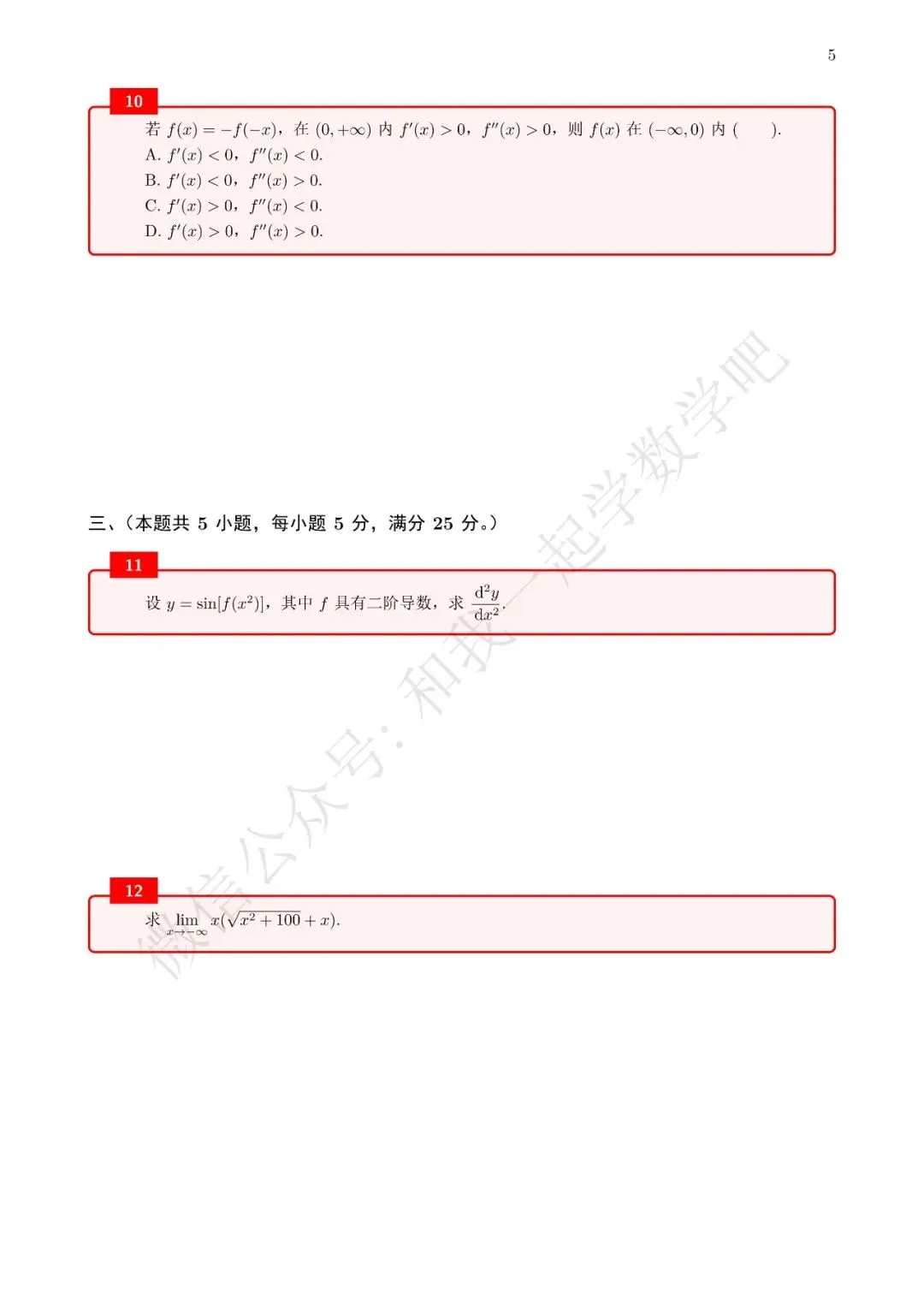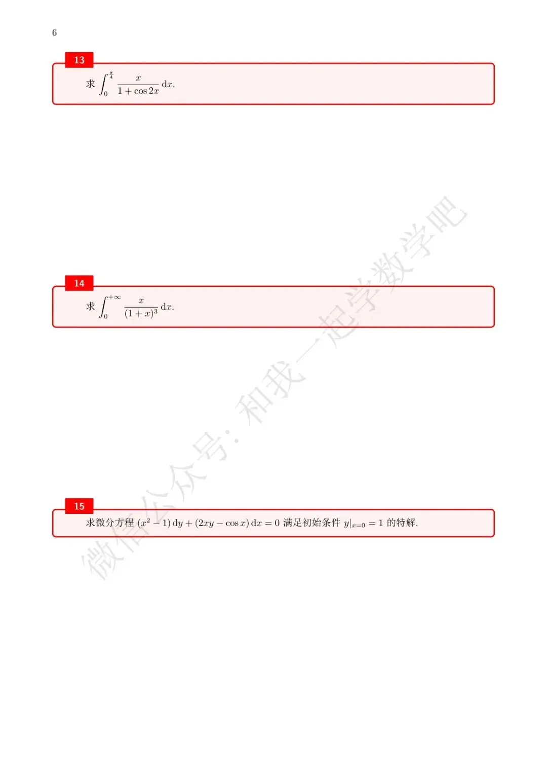 为了方便各位小伙伴们刷题,我重新排版了93年数二的真题,在每道题下面都增加了空白,方便大家写答案,记录相关知识点。