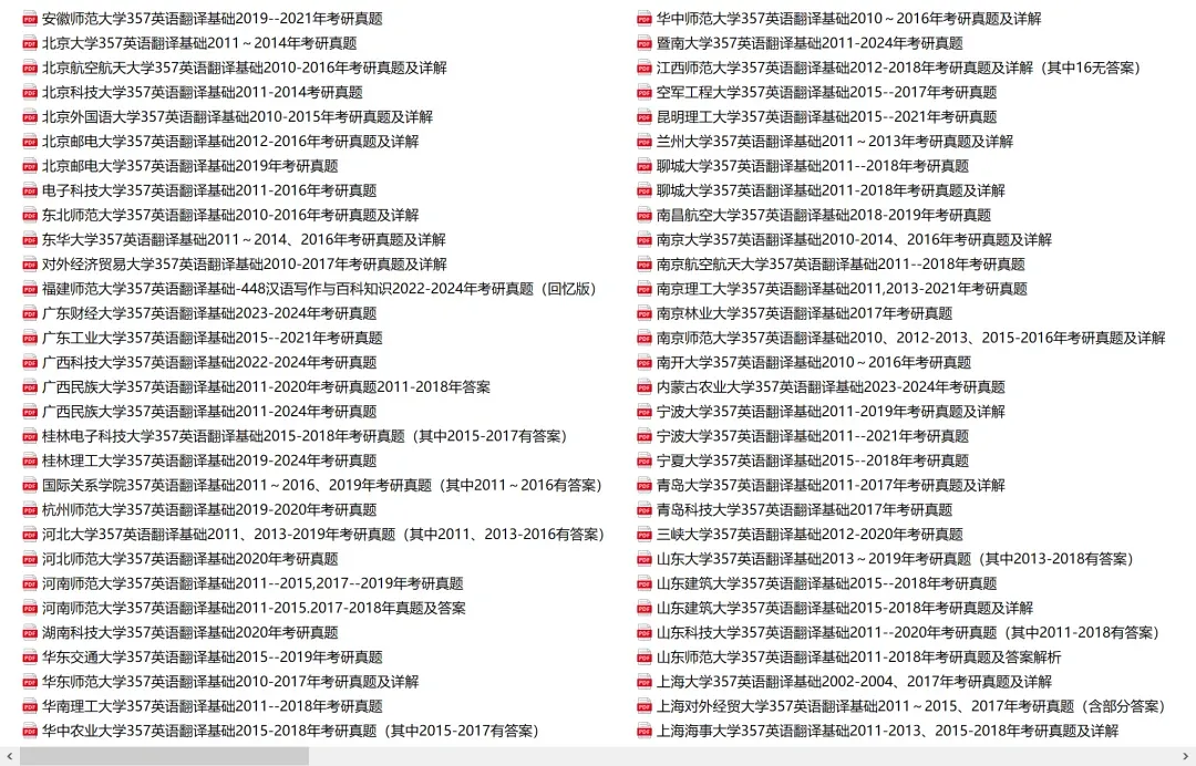 国际关系学院357英语翻译基础2011~2016、2019年考研真题(其中2011~2016有答案)