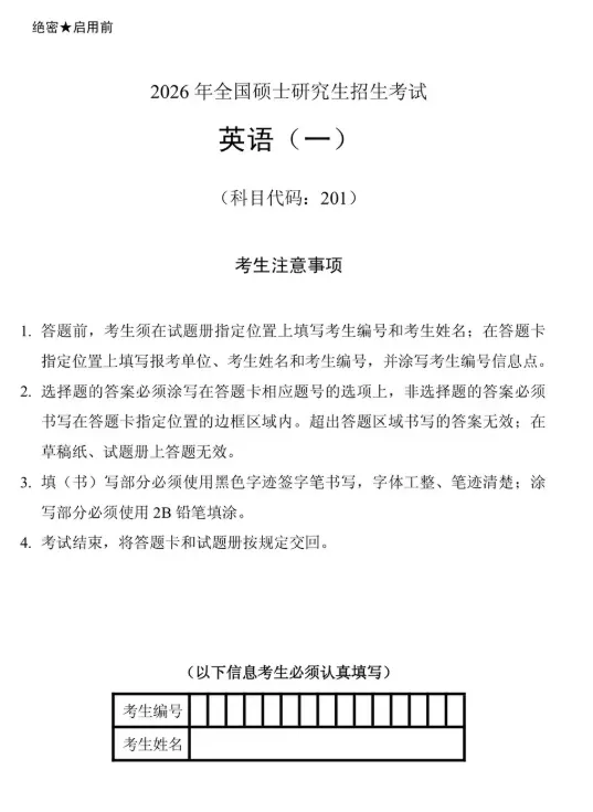 >2026 考研英语一真题试卷 + 参考答案 PDF 下载