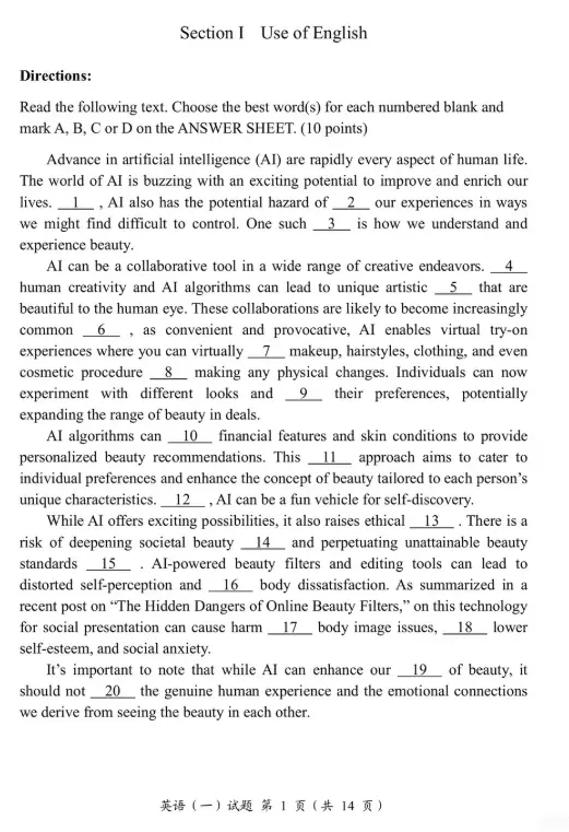 2026考研英语一真题试卷与参考答案电子版(多版本更新)