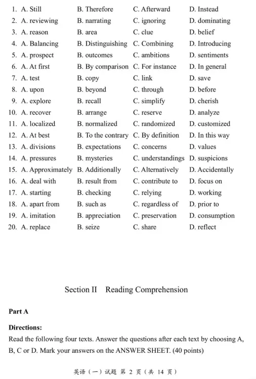 2026 年考研英语二真题试卷与参考答案汇总