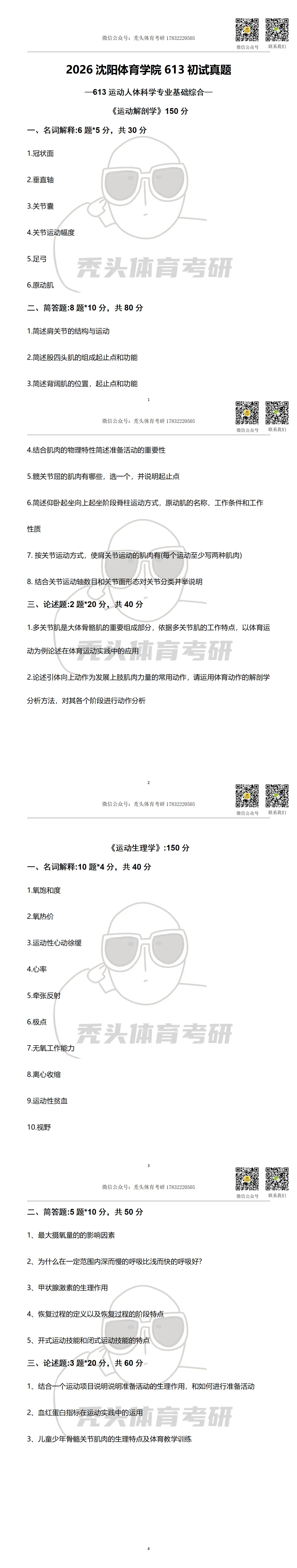 体育考研真题丨沈阳体育学院613初试真题(2026)