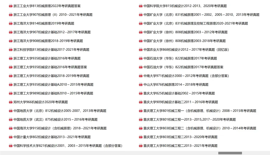广东工业大学801机械设计2001--2003,2005--2021年考研真题