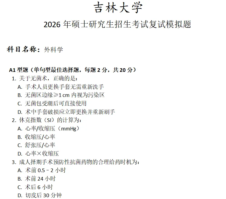 吉林大学外科学考研复试真题模拟含答案