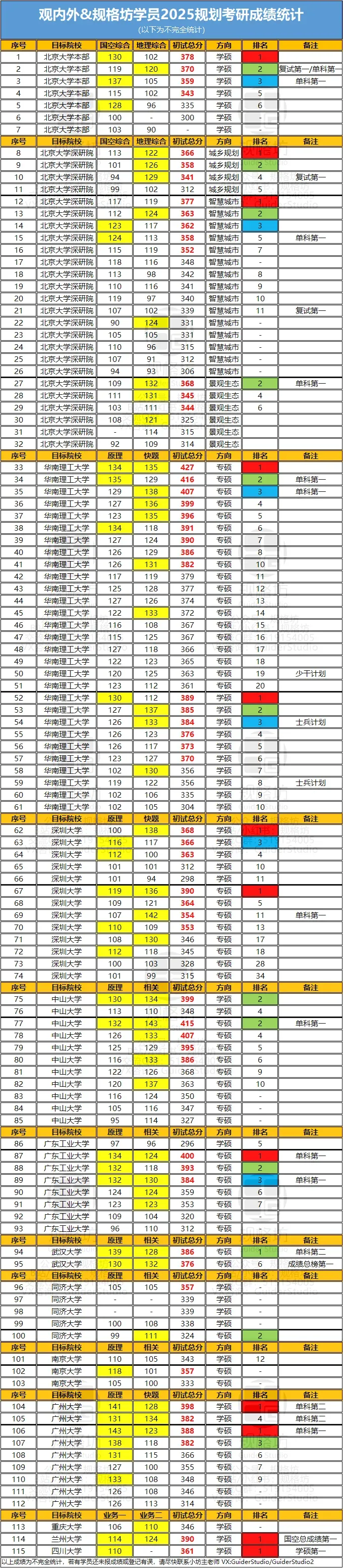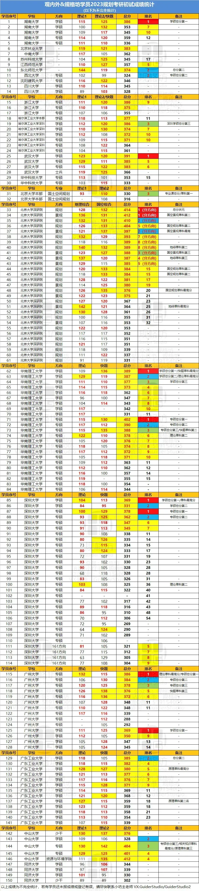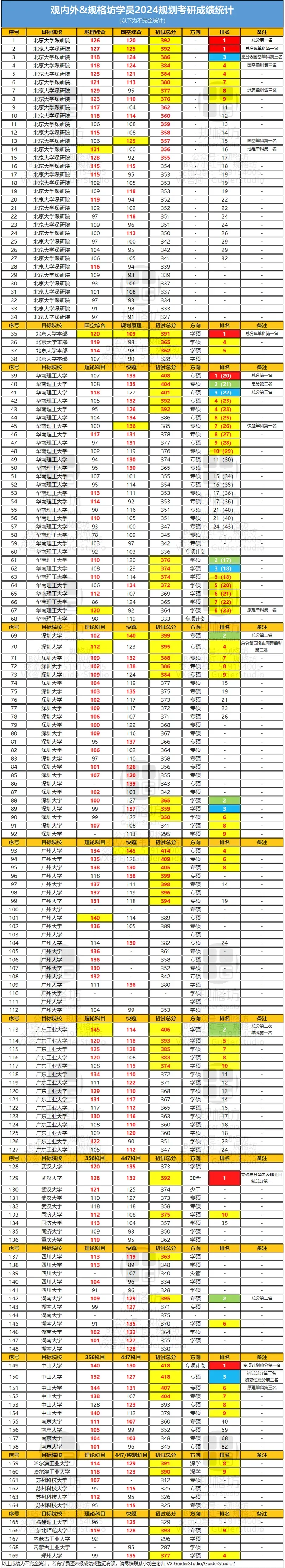 规格坊首次开设北大深定向课程,前31名占据10个席位。摘得总分第一名408分,方向二前两名,并取得景观生态学单科最高分133分,城市规划原理单科最高分137分,地理学综合单科第二129分(两枚)。