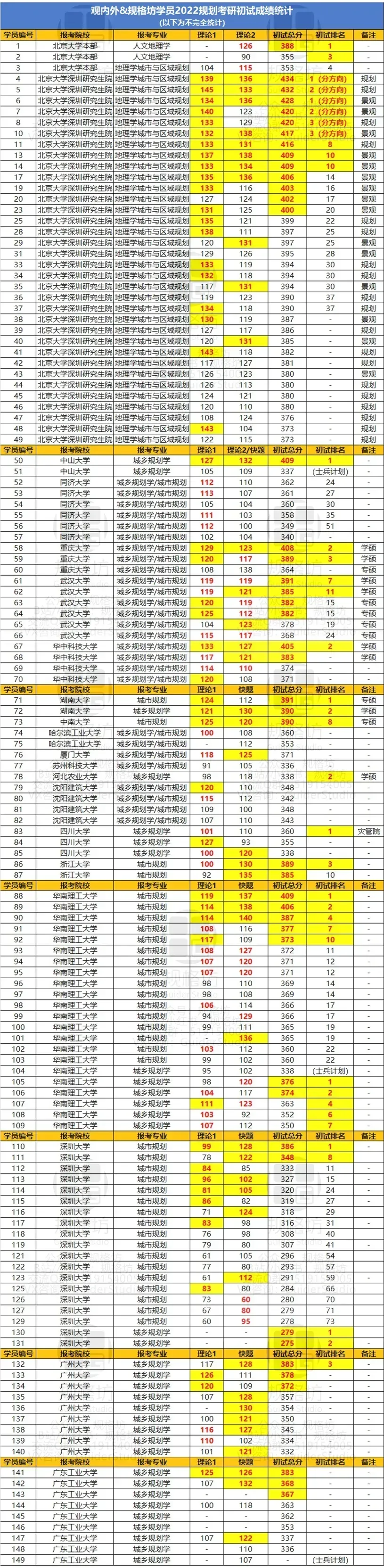 规格坊学员取得最高分434,为北大深地理学(城市与区域规划)考研史上最高分,并包揽两个方向组的前三名。规格坊学员取得专业课单科状元大满贯,其中地理学综合145分,国土空间规划综合方向组一136分,方向组二138分(两枚)。