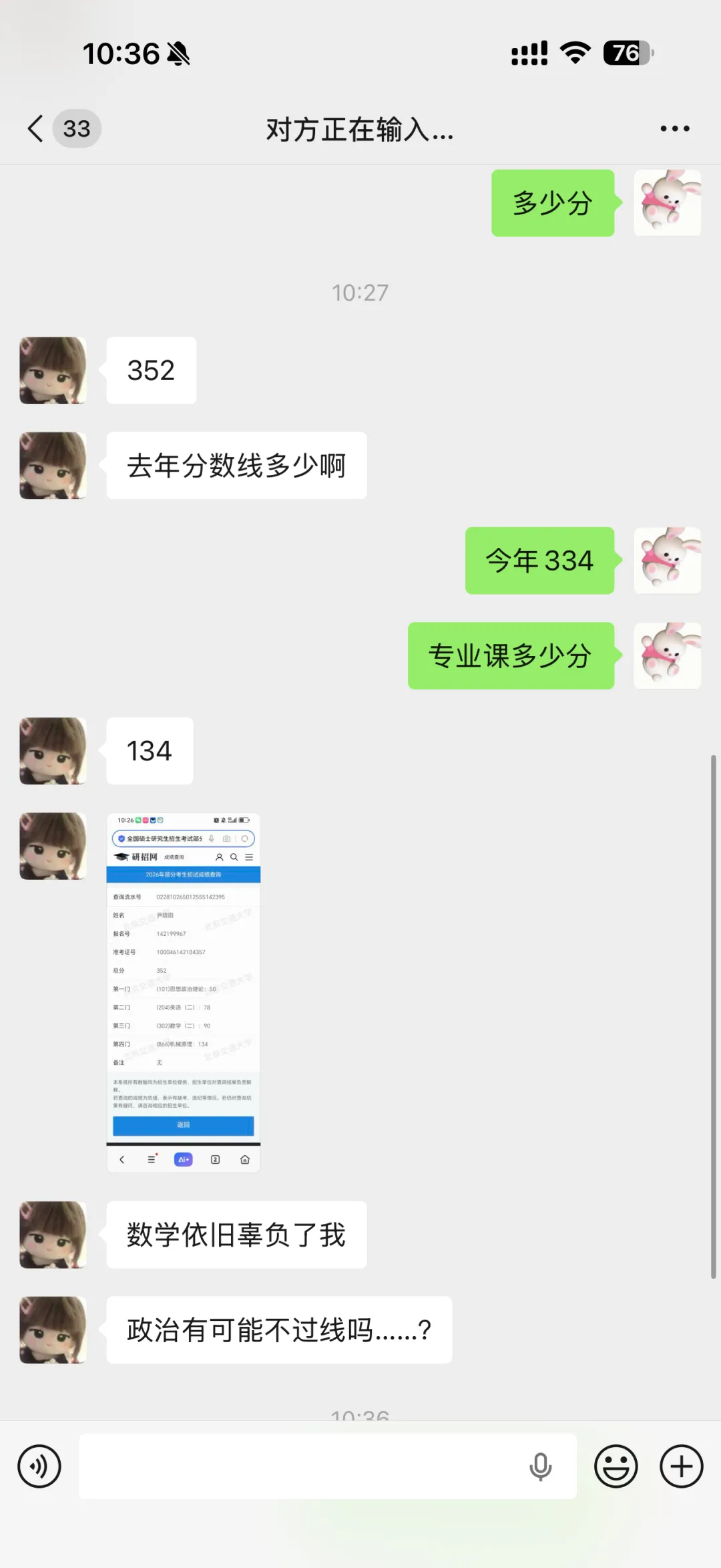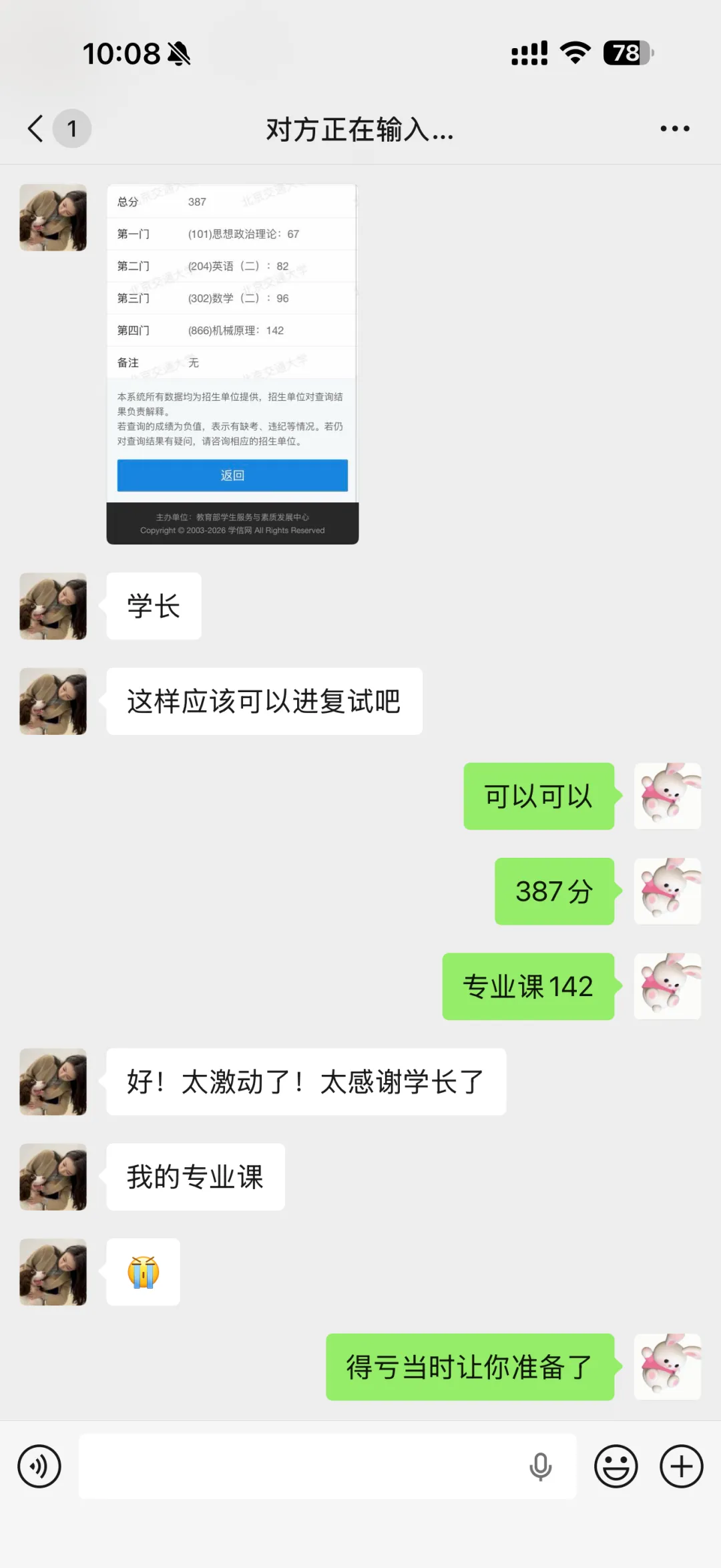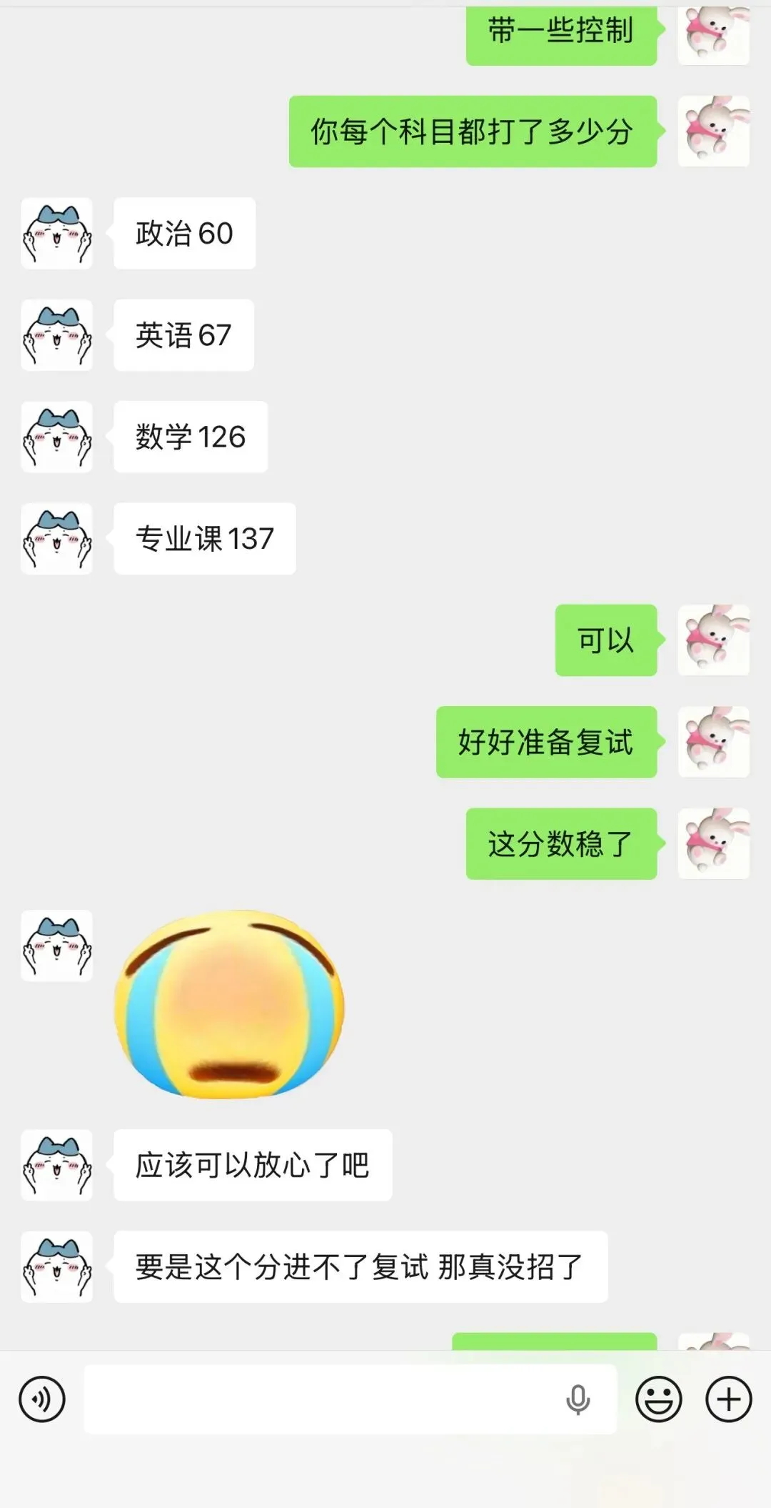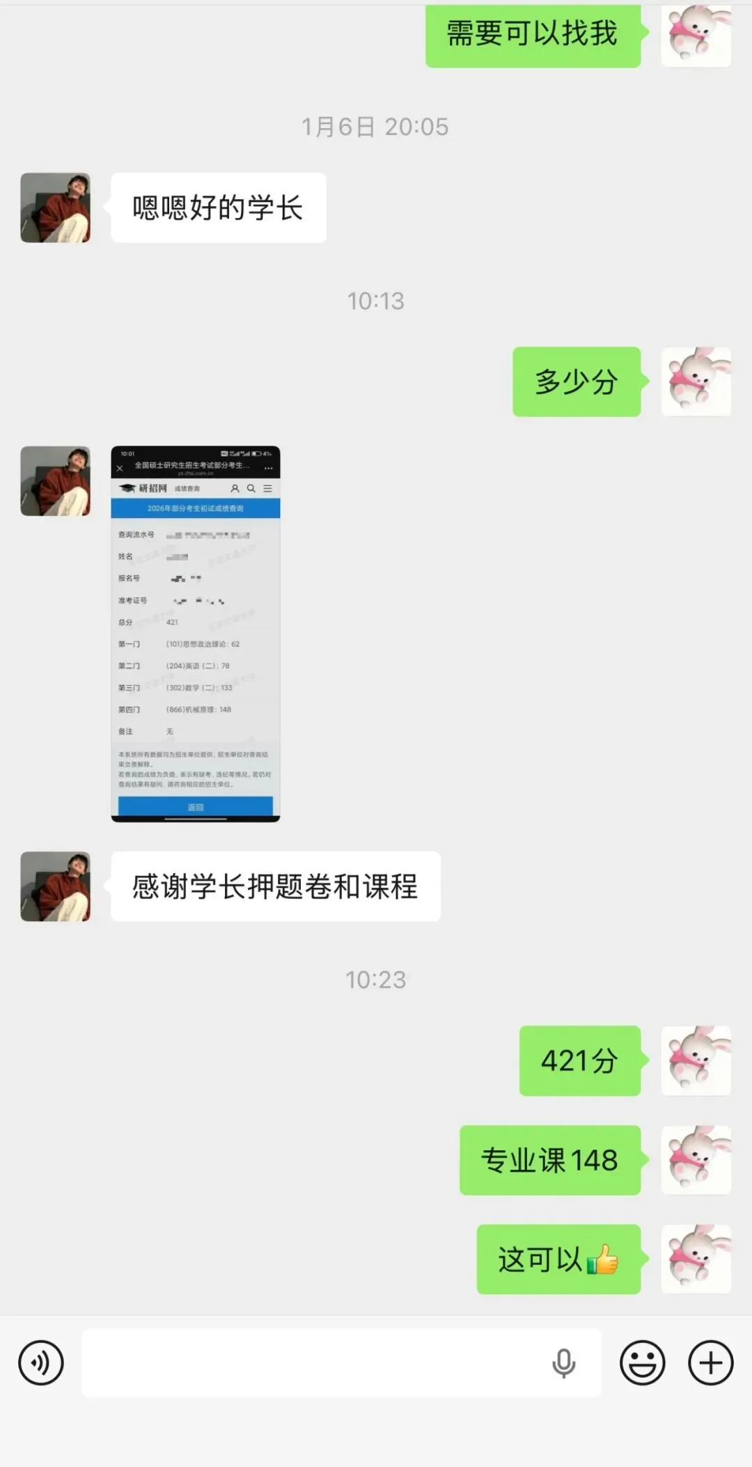 今年的专业课难度不是很大,同时我还压中了4个原题(75分),所以专业课均分比较高。另外数学和英语难度也比较低,所以今年总分都比较高,到27考研分数一定会降下去(因为26考研分数太高,大家都不敢报),如果专业课目标分数是奔着135+去的,尽可能早的开始专业课的学习。以下是26跟我学习的同学的分数展示: