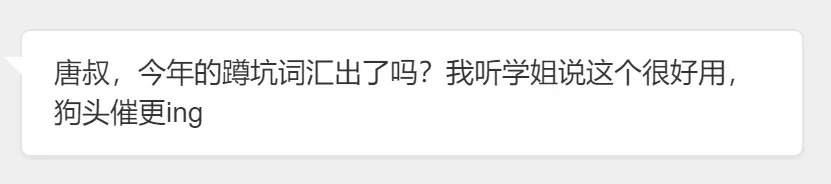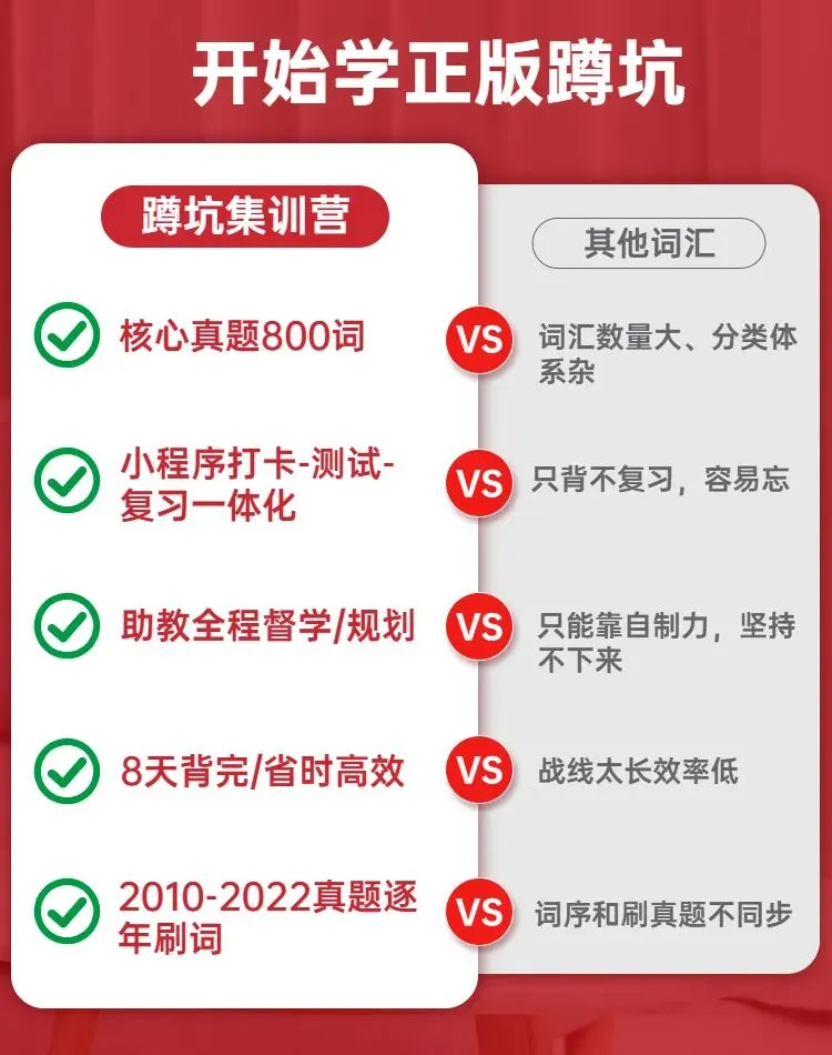往年的蹲坑词汇局限于技术难题,只能给大家分享一份野生的词单。今年在开始学团队的加持下,蹲坑词汇全新升级,配套小程序支持