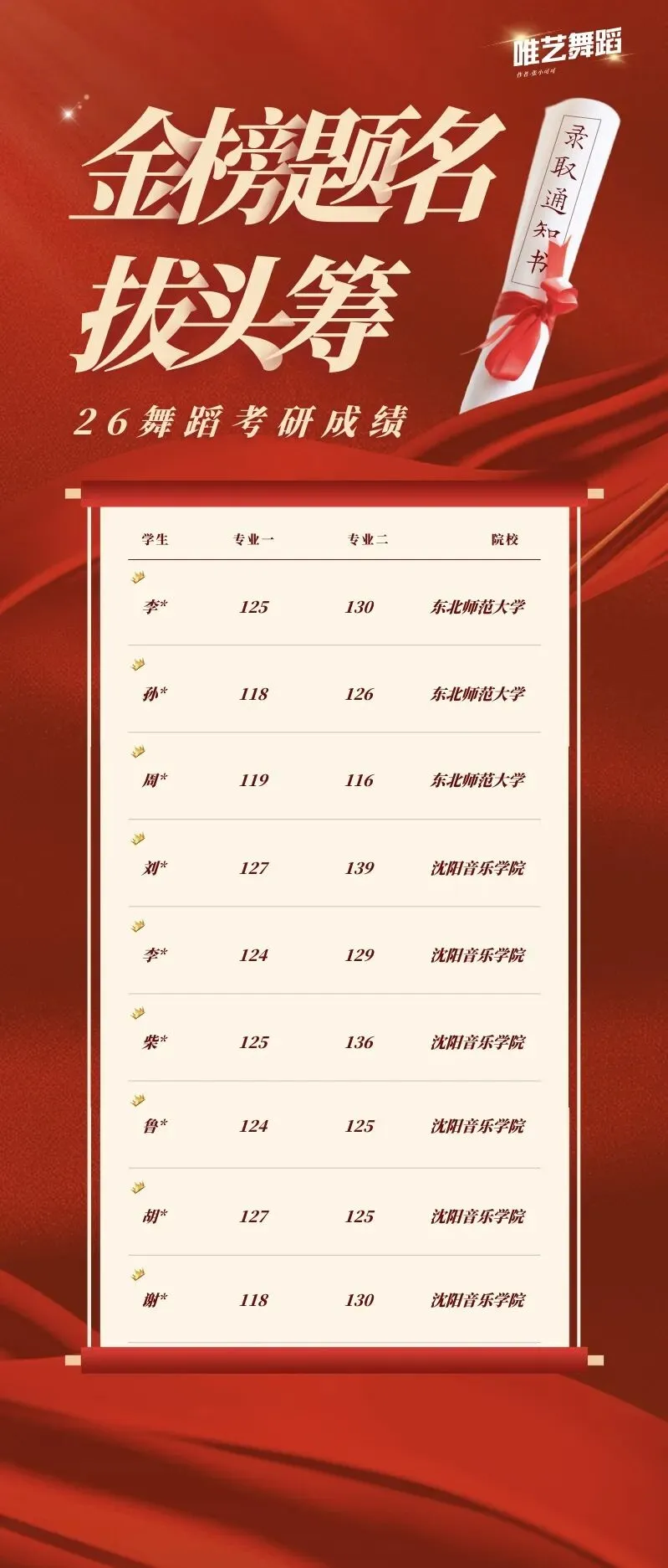 >26舞蹈考研专业课高分公示!