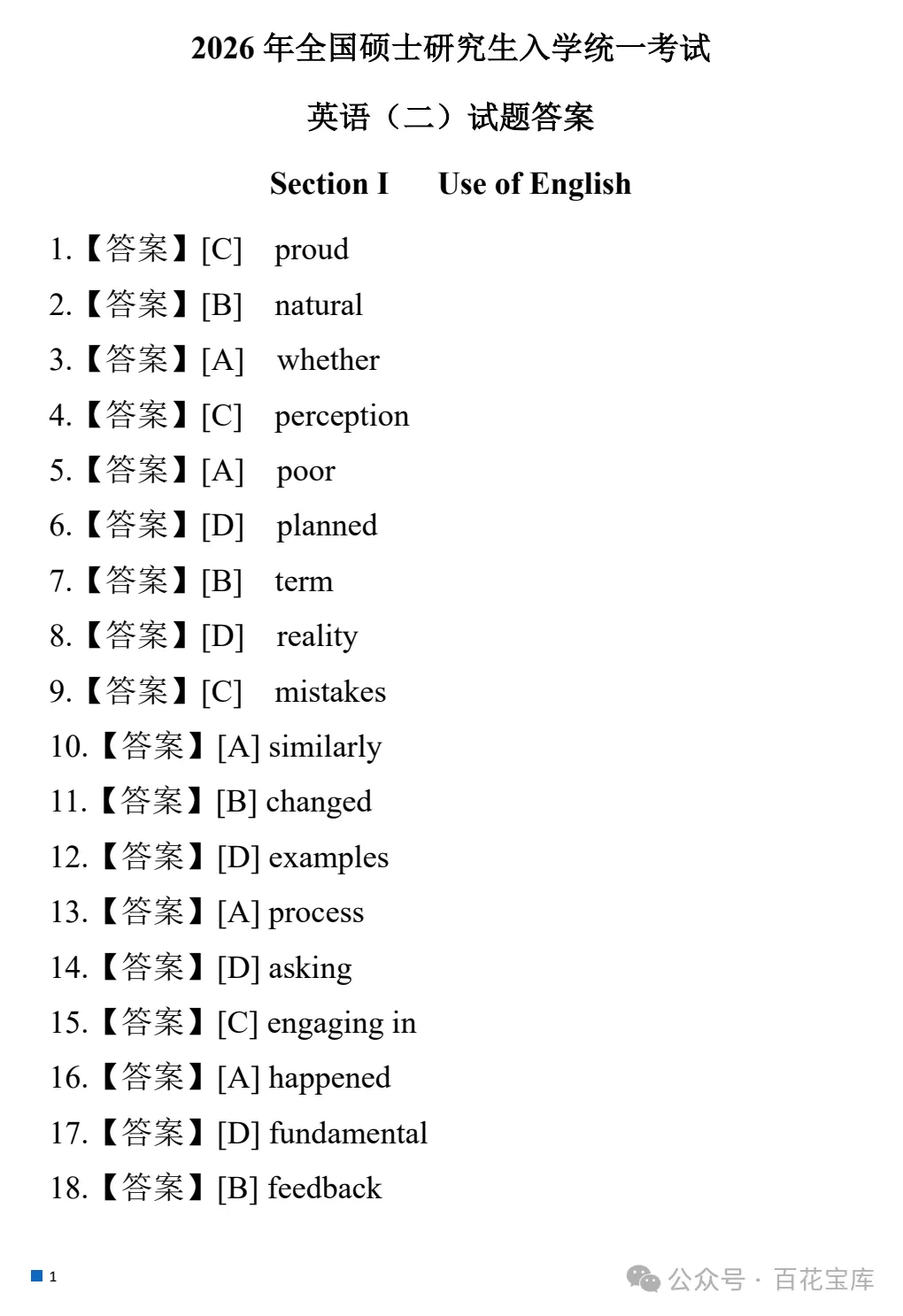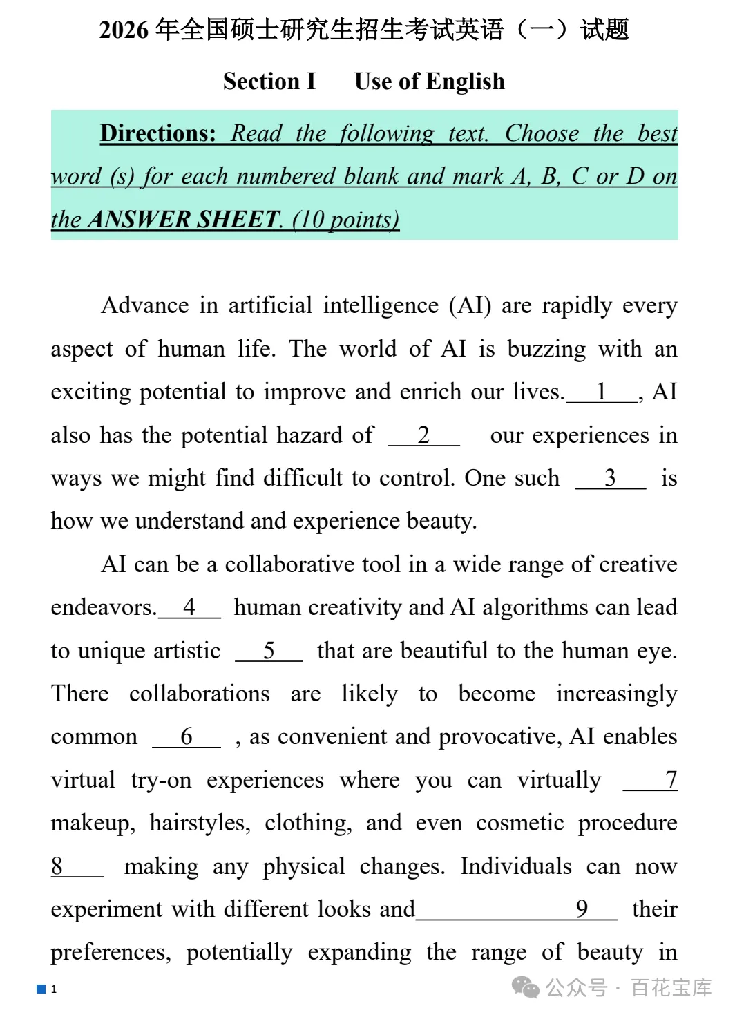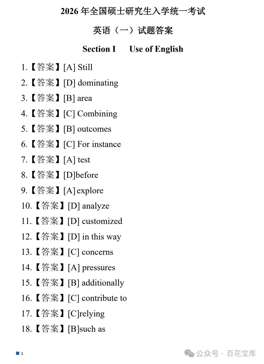 2026年研究生考试《英语一》真题试卷+参考答案(完整版)