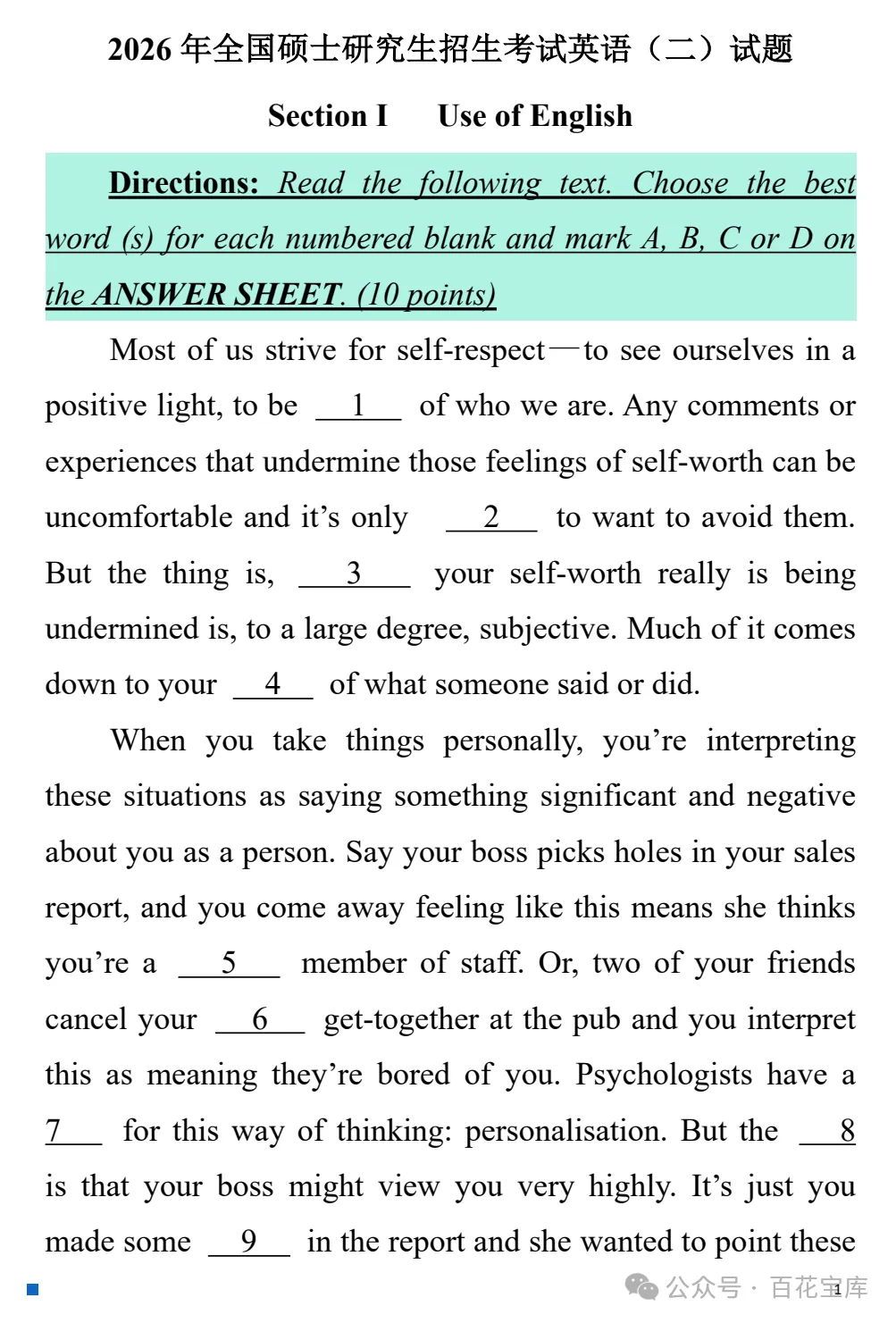 2026年研究生考试《英语二》真题试卷+参考答案(完整版)