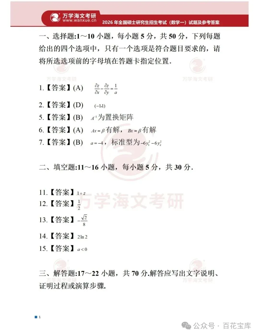 2026年研究生考试《数学一》真题试卷+参考答案(完整版)