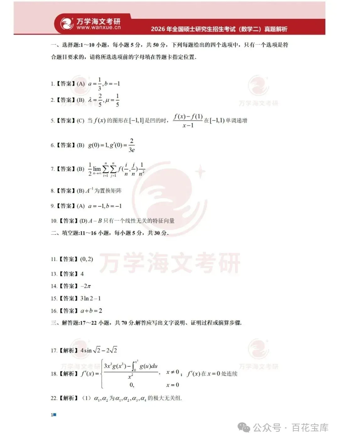2026年研究生考试《数学二》真题试卷+参考答案(完整版)