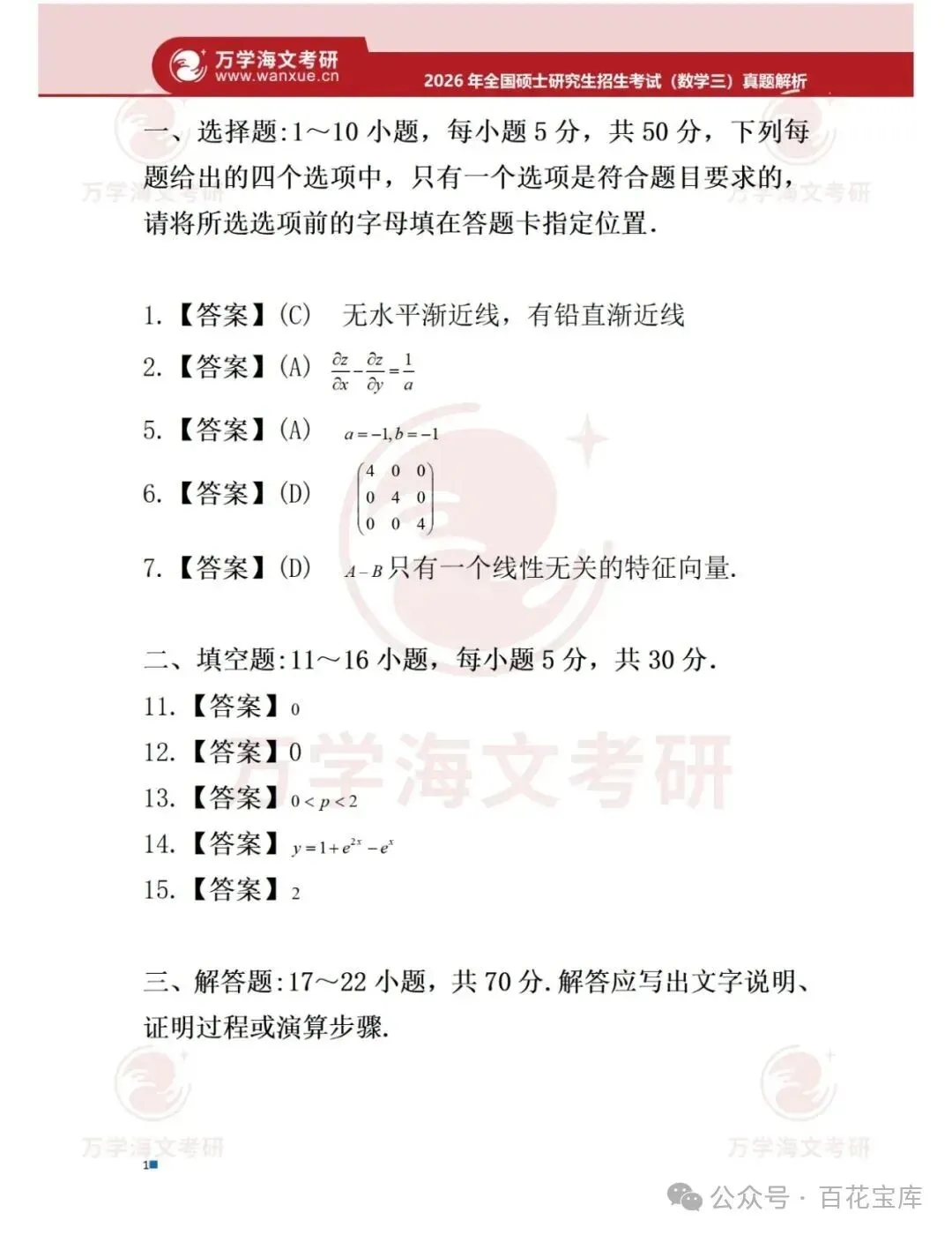 2026年研究生考试《数学三》真题试卷+参考答案(完整版)