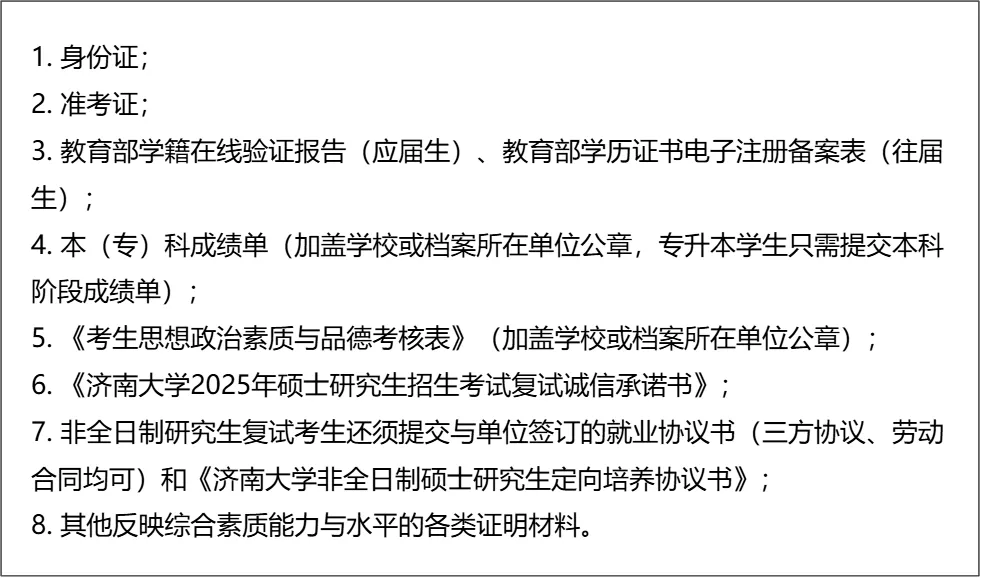 老师大白话分析:非全日制考生需额外准备就业协议书和定向培养协议书,提前与所在单位沟通办理;成绩单和考核表需加盖公章,建议提前联系相关部门准备,避免复试前仓促办理出错。