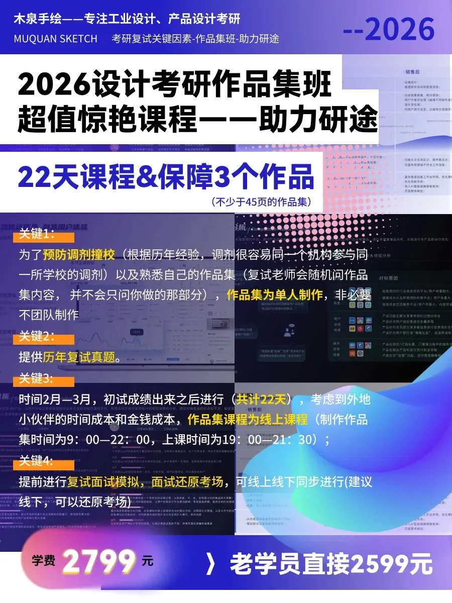 >【3月1日19:00作品集开课】2026考研作品集班保障3个作品(不少于45页)|提供历年复试