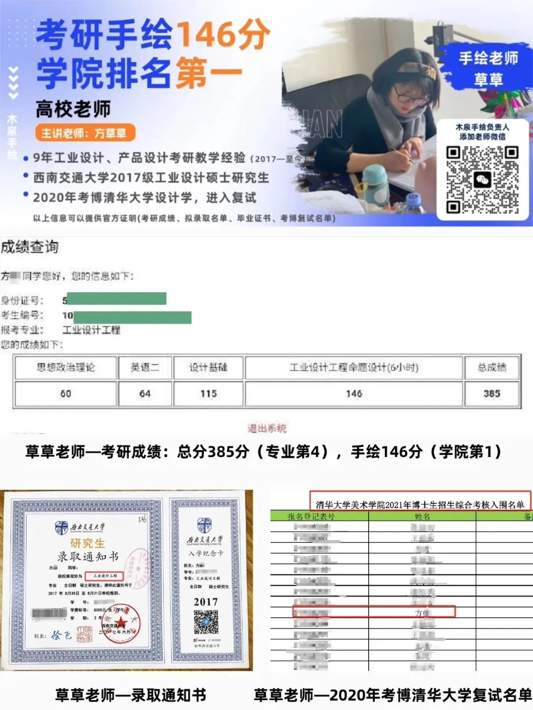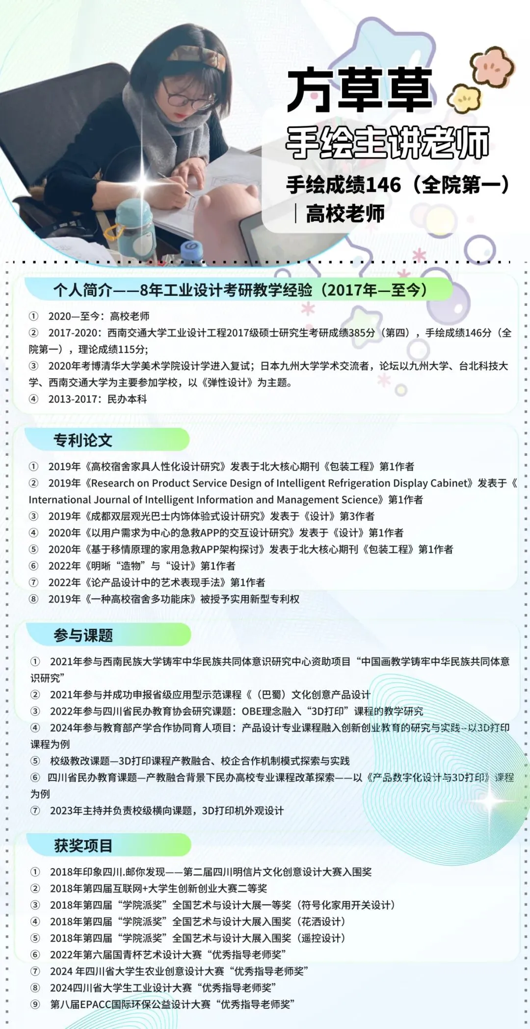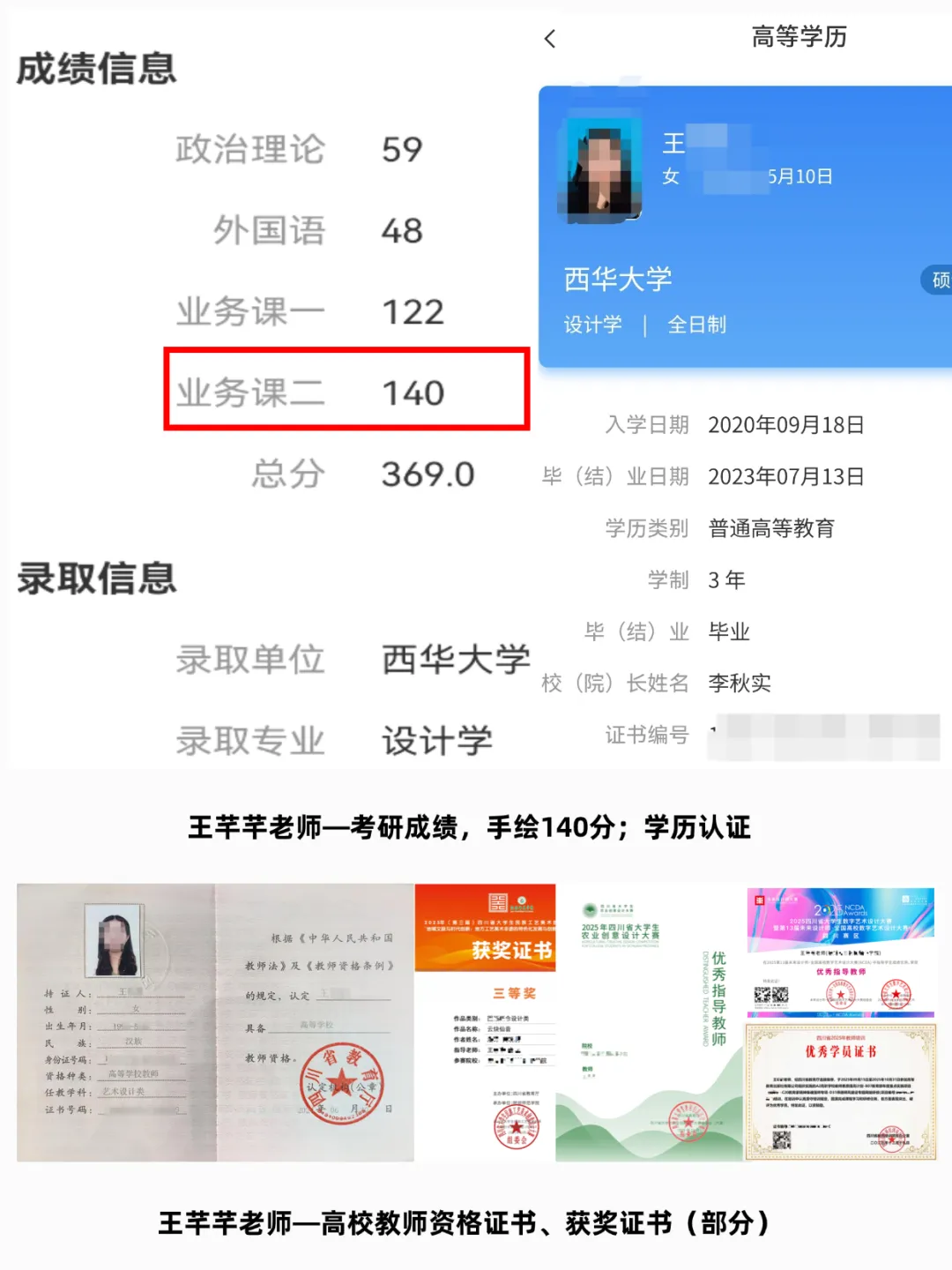 我们的主讲老师(手绘&理论成绩均为145+;作品集老师成绩140+)