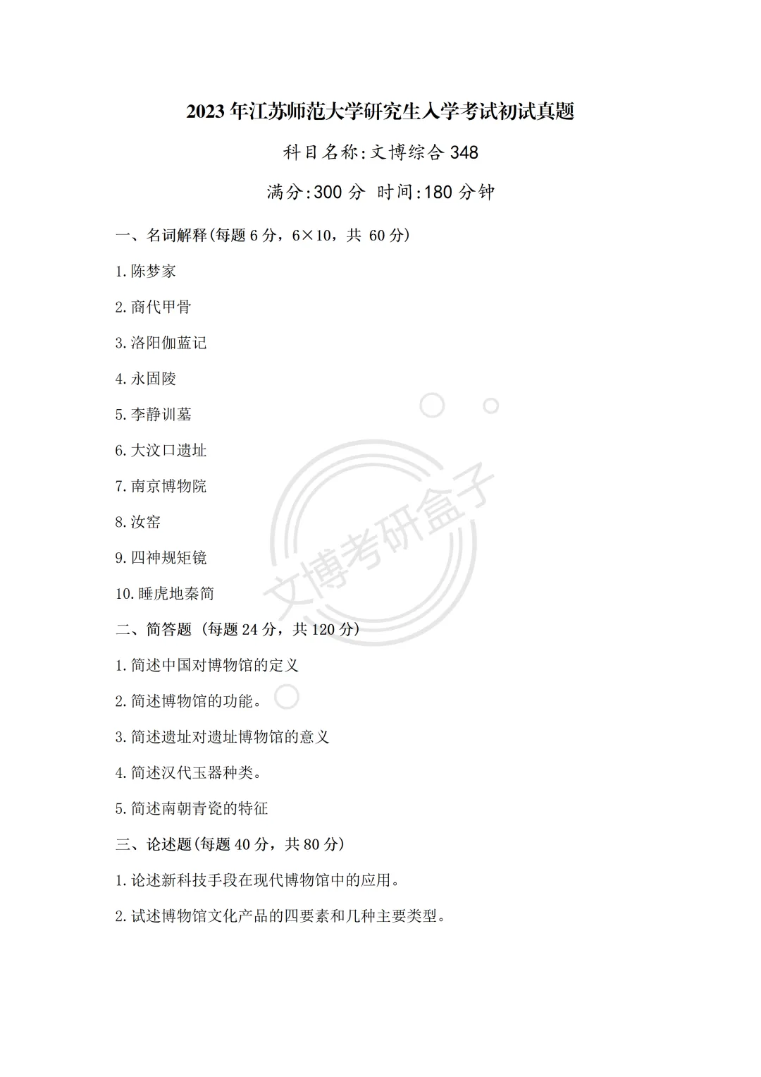 >文博考研 | 2023—2026年江苏师范大学『博物馆专业考研真题合集』