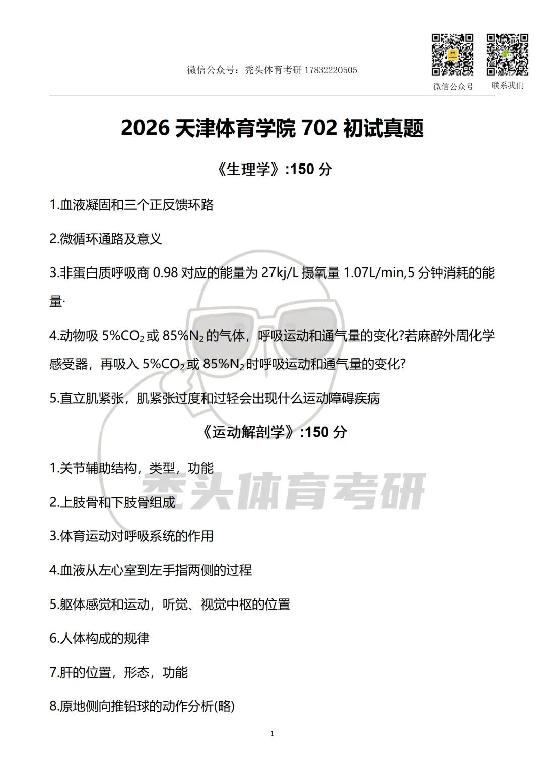 体育考研真题丨天津体育学院702初试真题(2026)