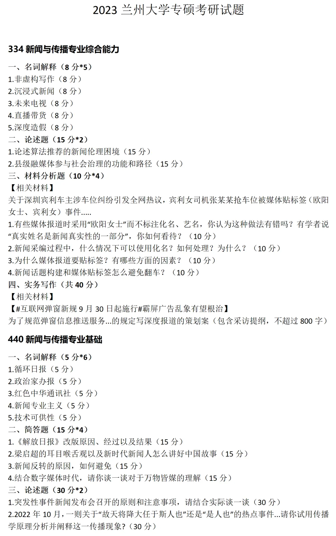 >兰州大学新闻与传播考研真题2023