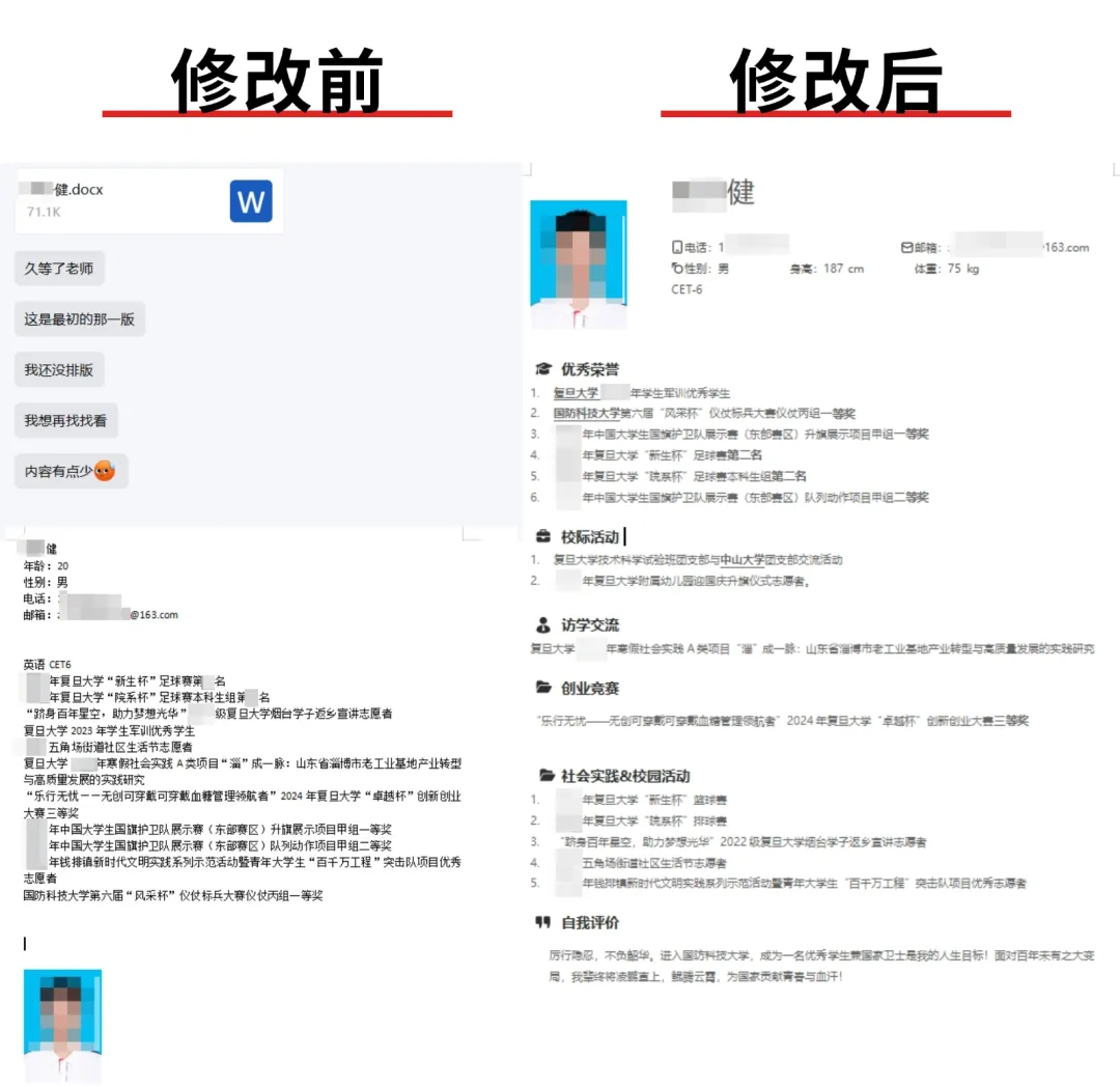 简历修改,协助考生将简历合理美化、凸显个人优势、放大加分项,并提供联系导师模板。