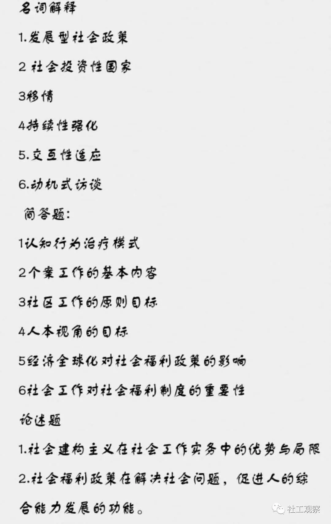 生命历程 社区权利 姑息服务 福利国家 发展型社会政策 效率评估(其余两个不记得)