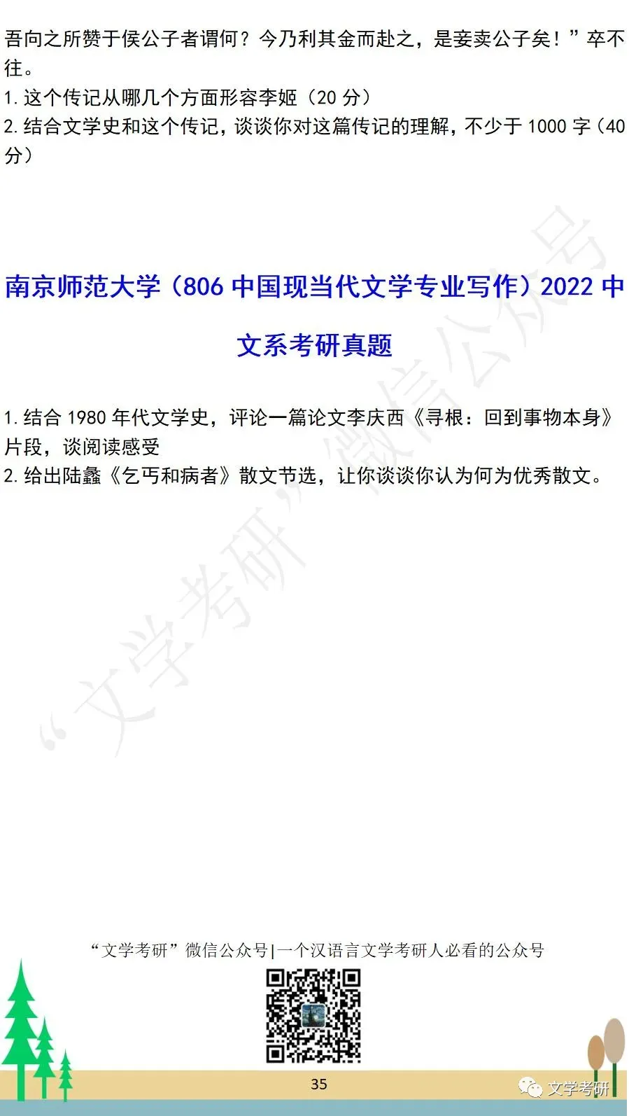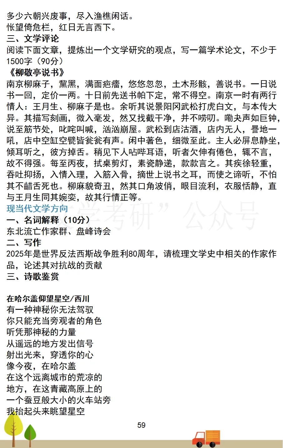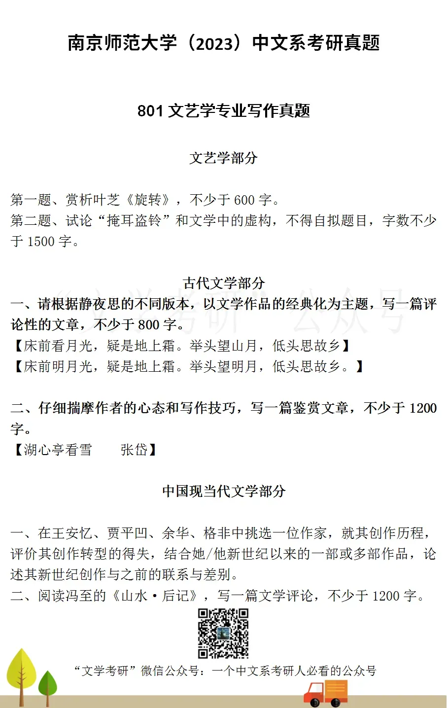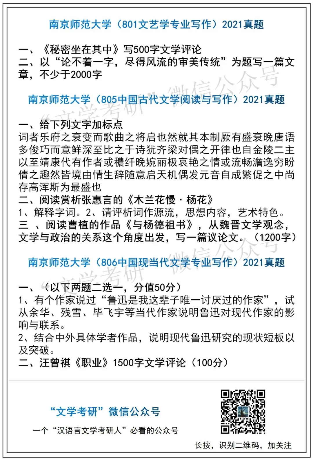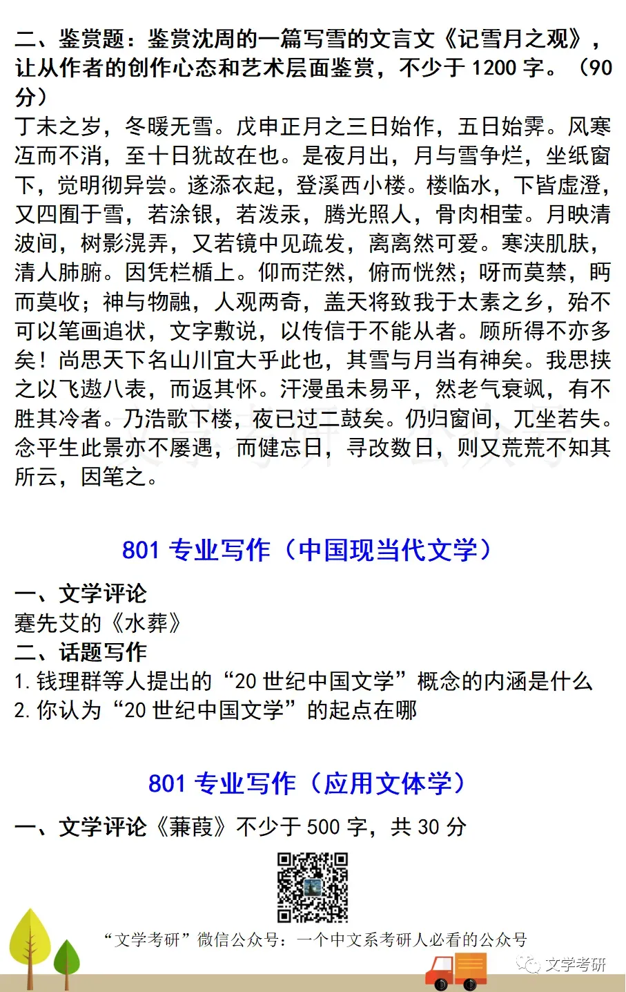 考试科目:801专业写作(现当代文学)