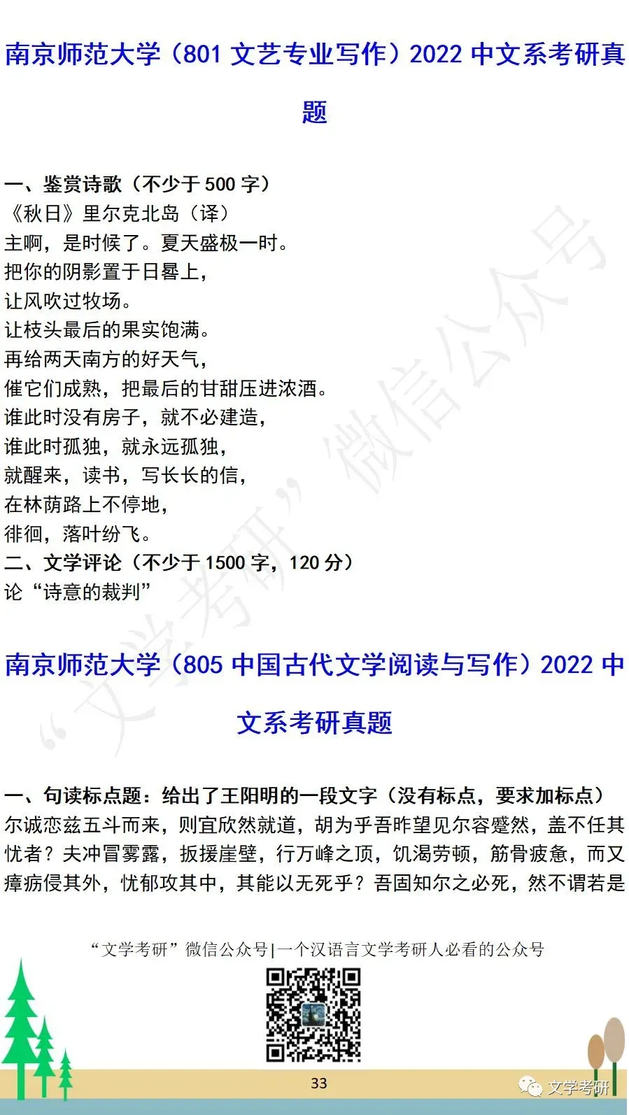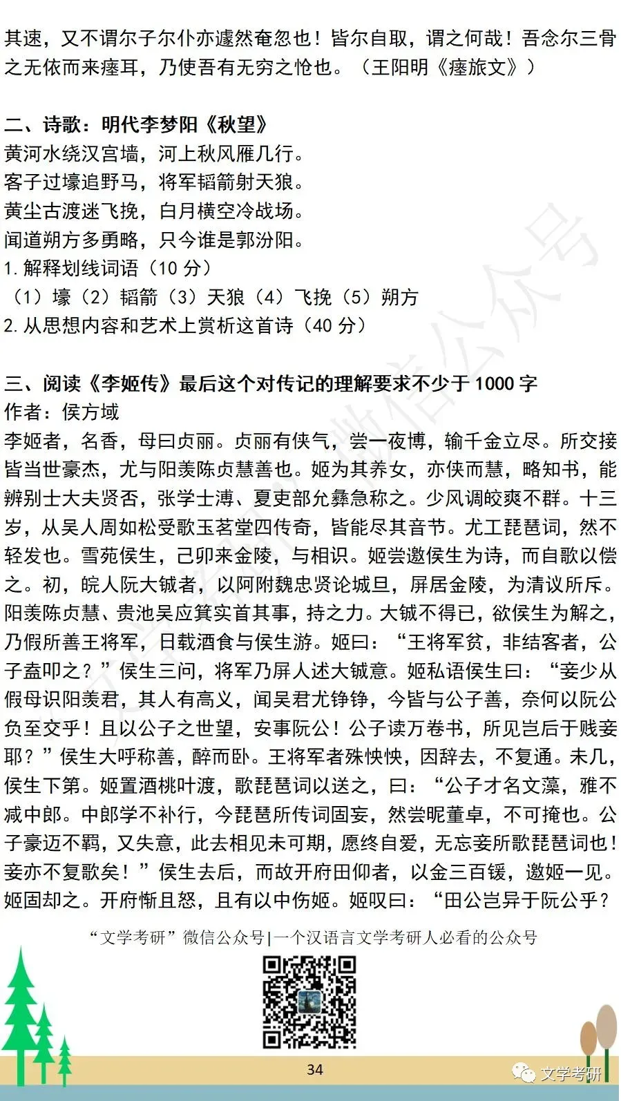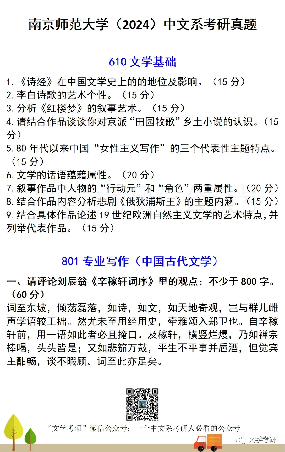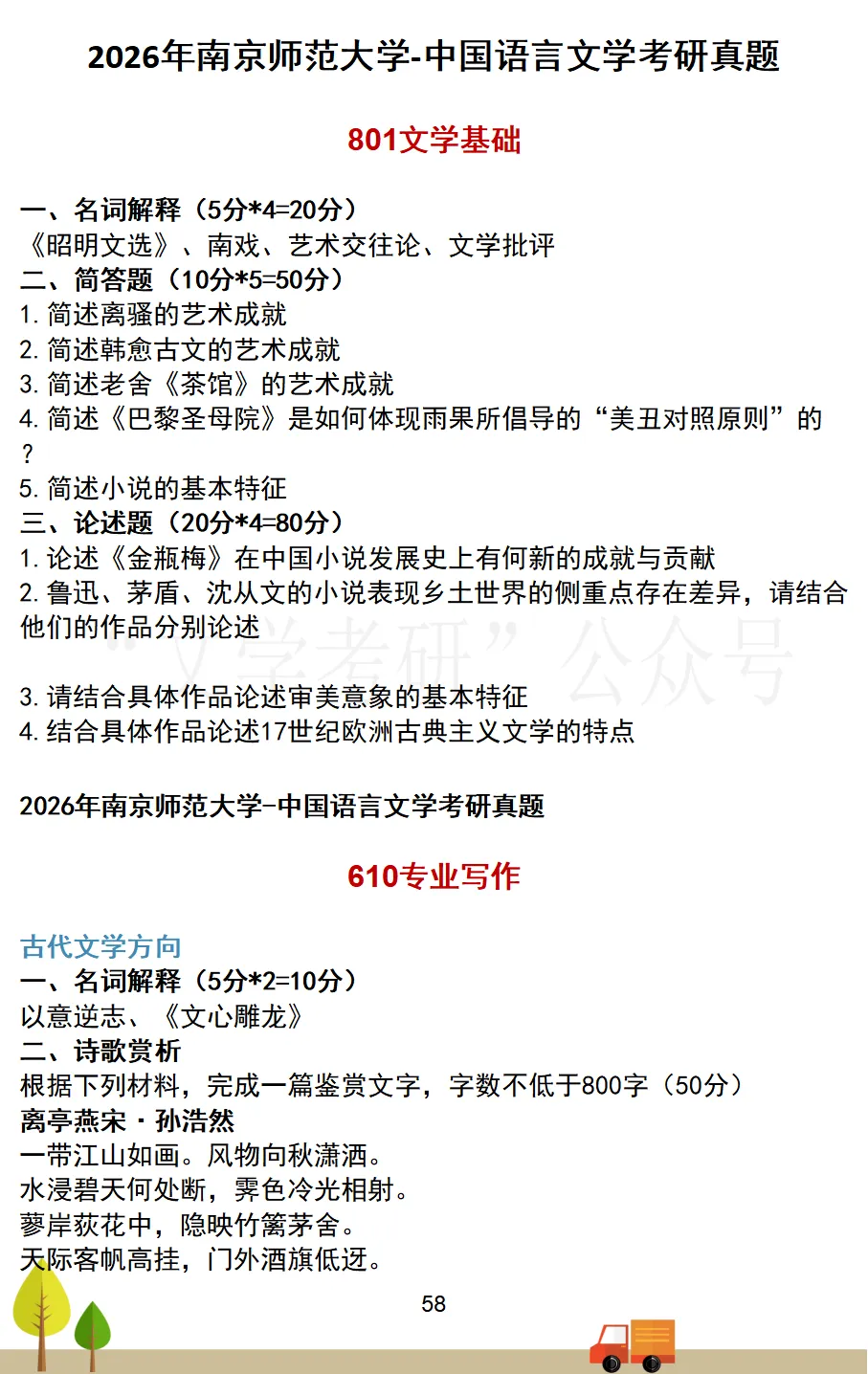 考试科目:801专业写作(古代文学)