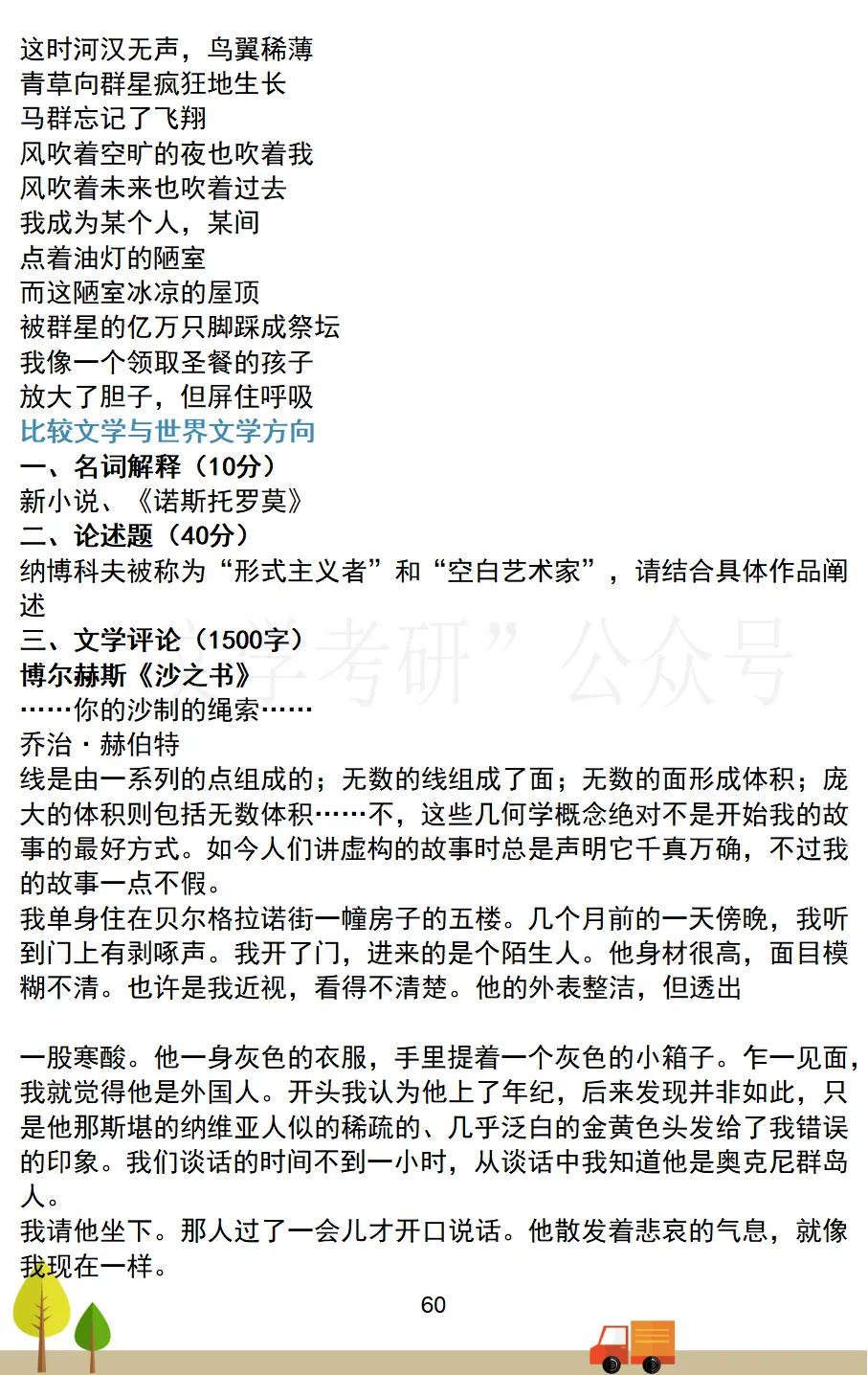 考试科目:801专业写作(世界文学与比较文学)