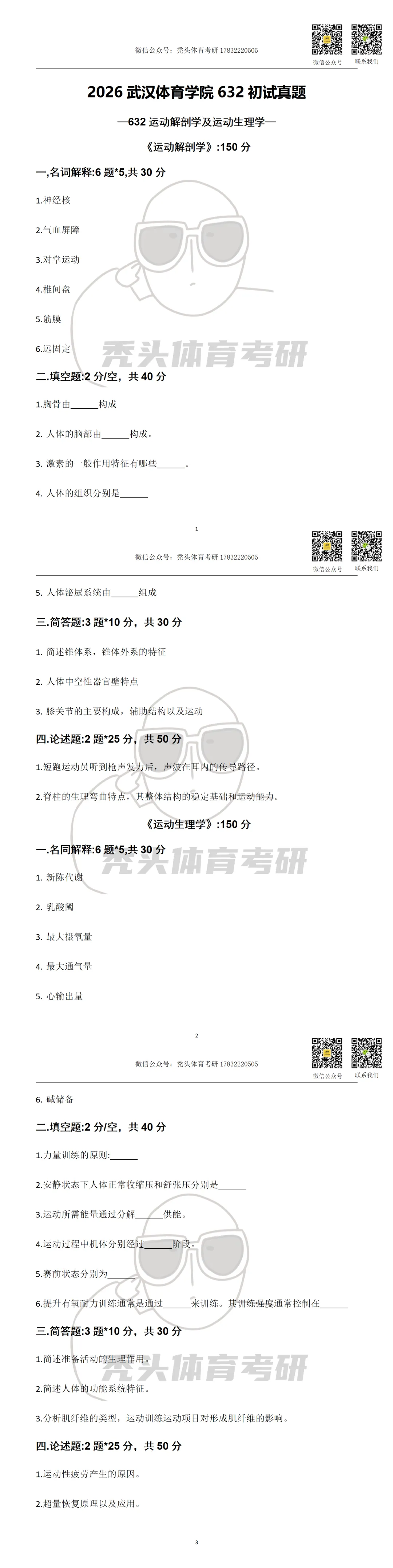体育考研真题丨武汉体育学院632初试真题(2026)