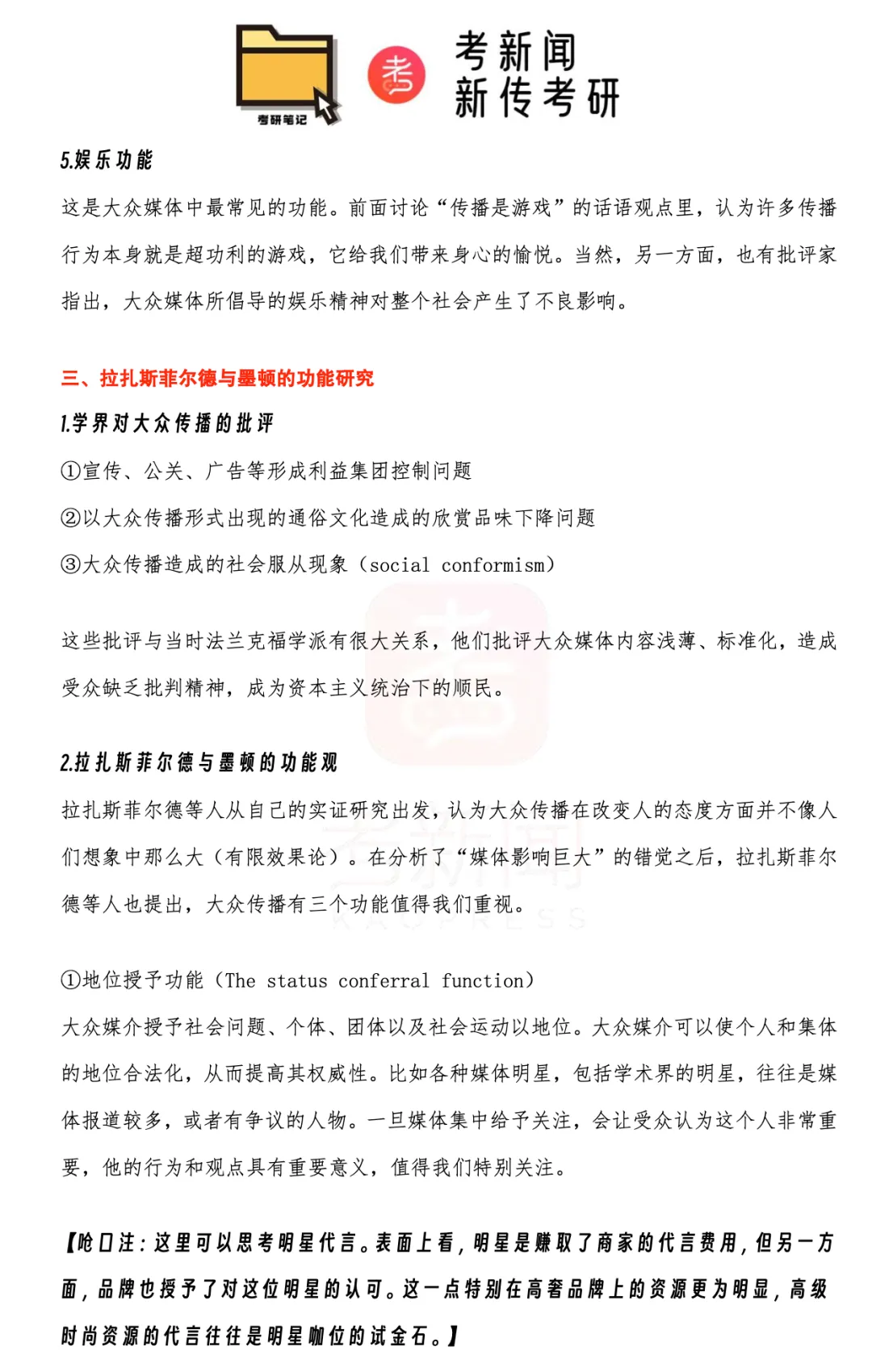 但是不论是拉斯韦尔的三功能说,还是赖特后来加入的娱乐功能。加上拉扎斯菲尔德和墨顿为了迎战法兰克福学派对大众传播发起的冲锋,也提出了著名的三功能。