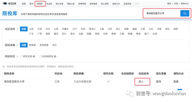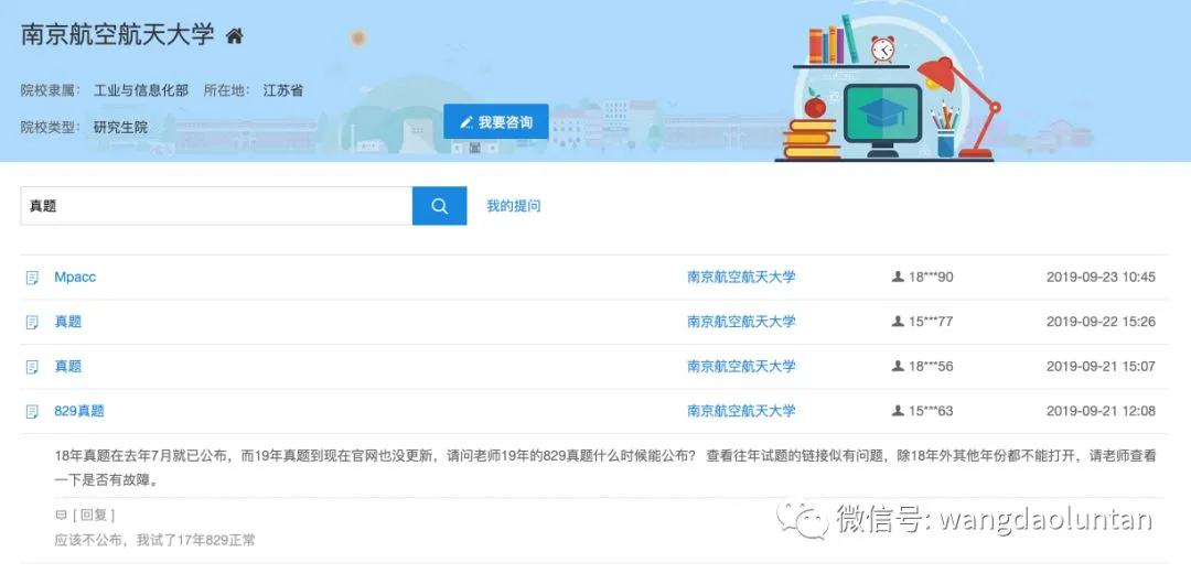 院校库-查询目标院校-进入咨询页面-搜索真题咨询