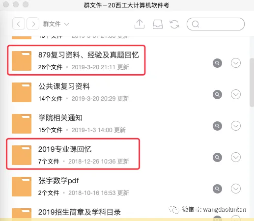 还可以去王道院校QQ群找。王道论坛上的内容是很多的,但是内容都比较分散,而qq群内的内容就都是整理好的,也比较全面,可以直接下载(如下图哈工大和西工大群)。