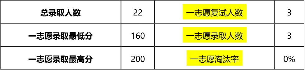 老师大白话分析:160分以上参与复试的考生录取率均为100%,195分以上属于稳录分数段,低于195分的考生也无需过度焦虑,重点保证复试各科合格即可。