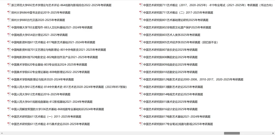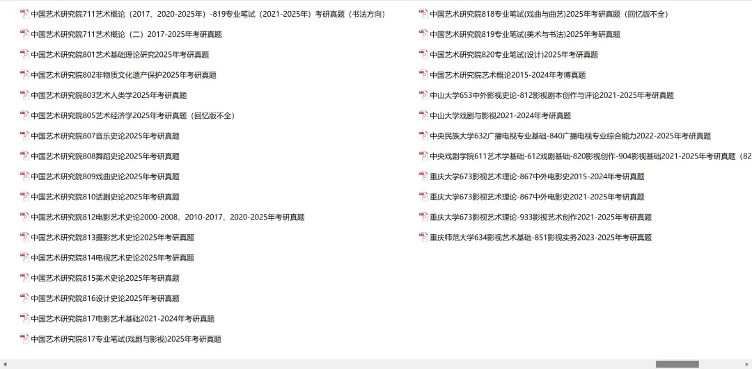 中国艺术研究院812电影艺术史论2000-2008、2010-2017、2020-2025年考研真题