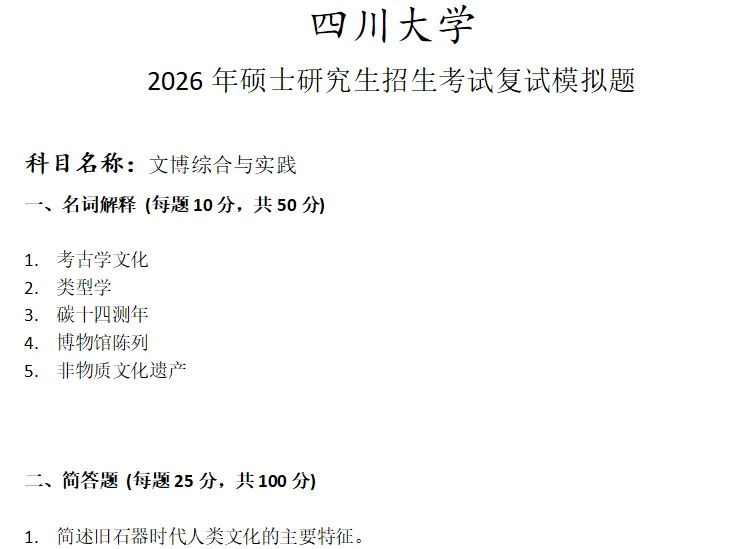 四川大学文博综合与实践考研复试真题模拟