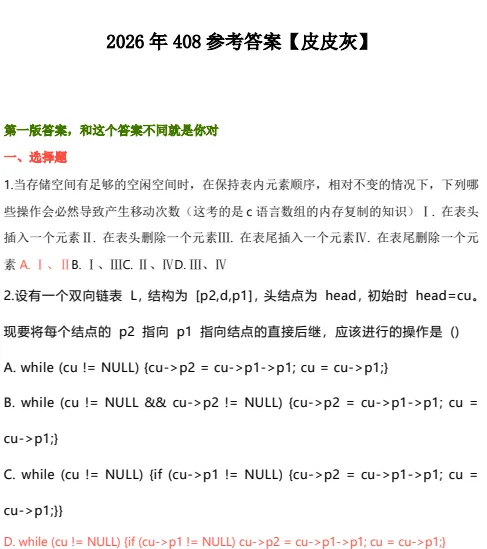 2026考研408计算机真题与答案