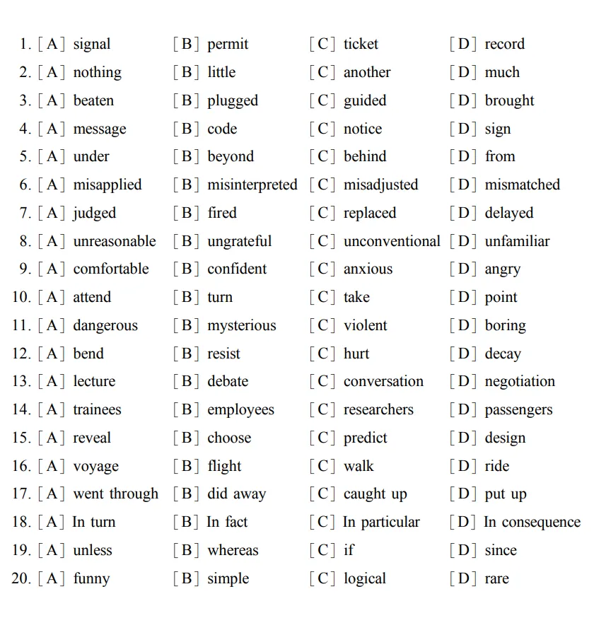 注:四个选项中,do away with(废除)、catch up with(赶上)、put up with(忍受)——必须加 with,是固定搭配。
