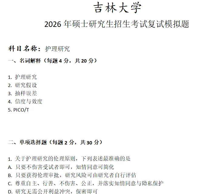 当前位置:首页>考研真题>吉林大学护理研究考研复试真题模拟
