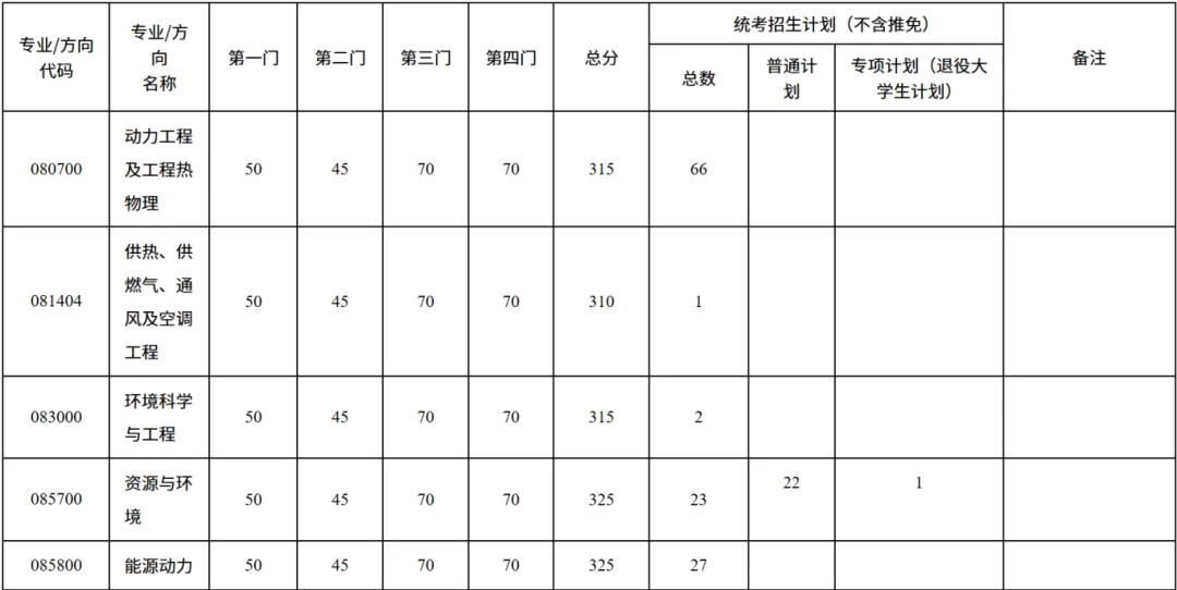 3. 能源与环境学院招生计划包含1个先进技术联培专项指标。