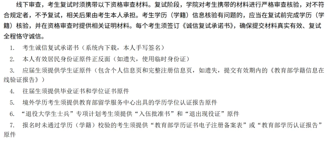 以上七条缺一不可,皆为参加复试的必要内容。