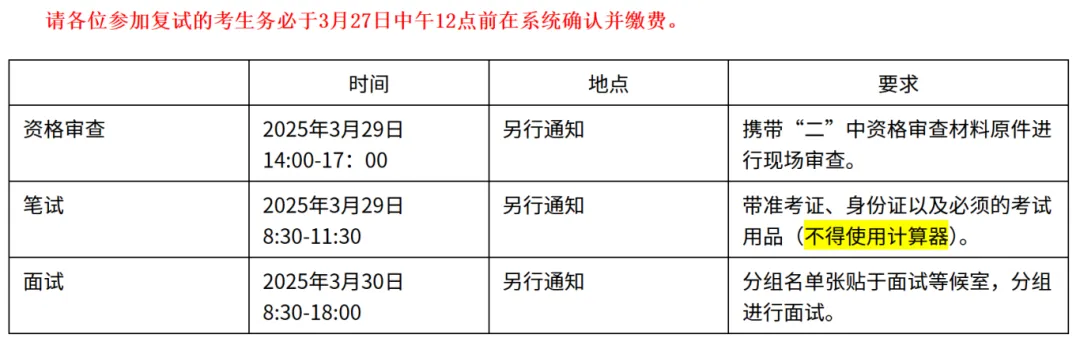 3.复试成绩(满分为150分)= 复试笔试成绩*50%+复试面试成绩*50%。