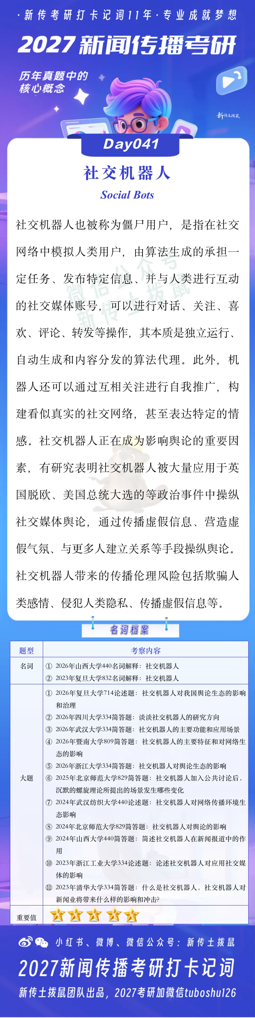 社交机器人 | 2027新闻传播考研真题打卡记词Day041