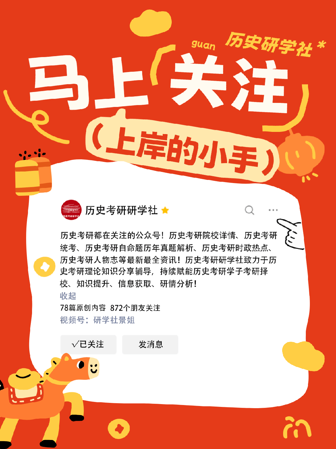 研学社已帮助一届又一届的历史小白完成蜕变,敲开985、211、双一流的大门!今年已经迭代到27届版本,我们的使命就是帮助你们上岸。学历史,研学社是专业的!🎓