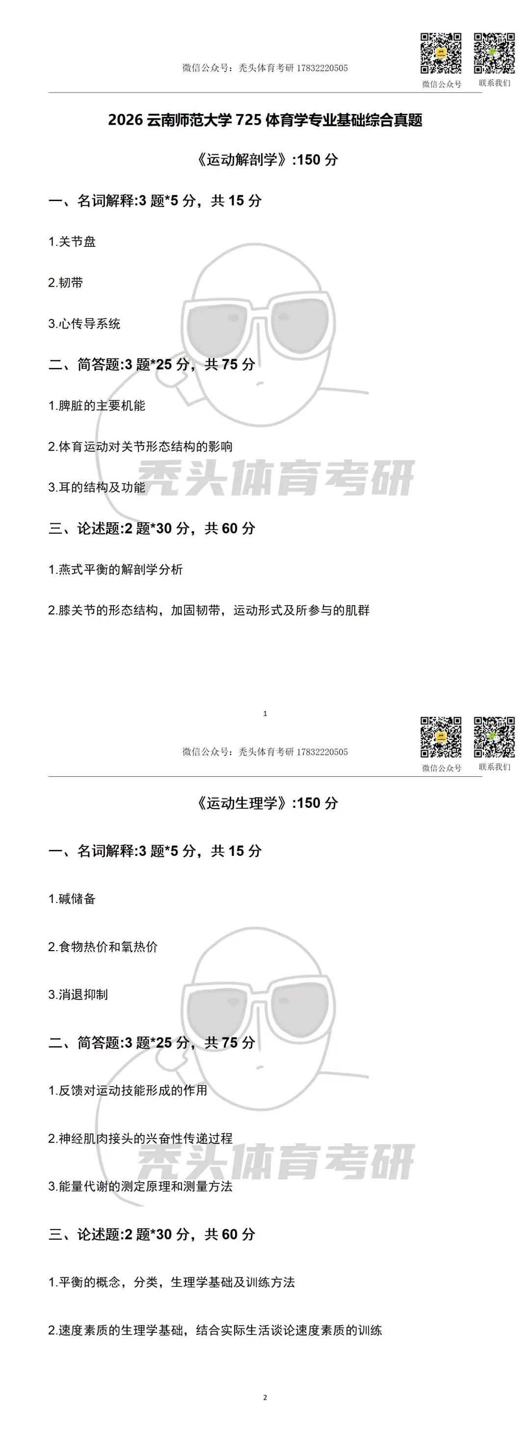 体育考研真题丨云南师范大学725初试真题(2026)