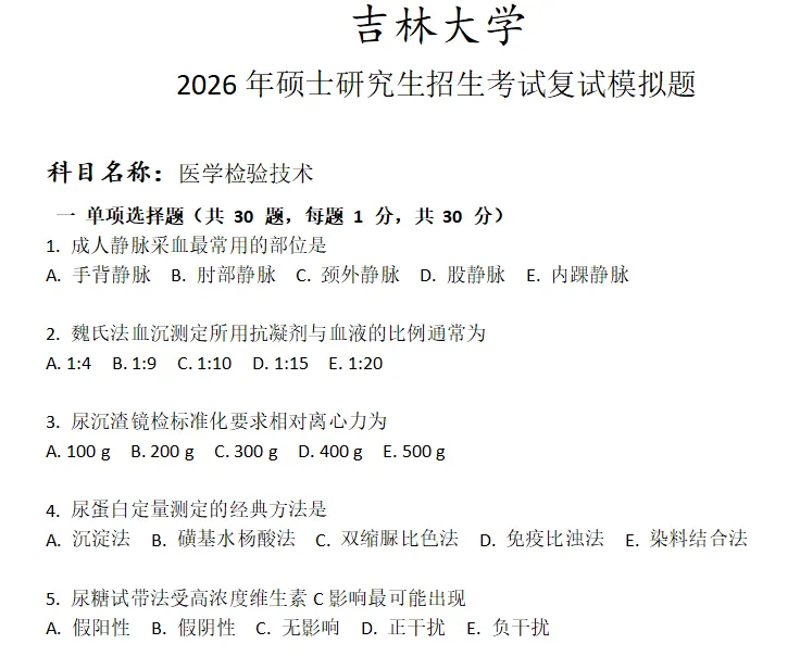 当前位置:首页>考研真题>吉林大学医学检验技术考研复试真题模拟